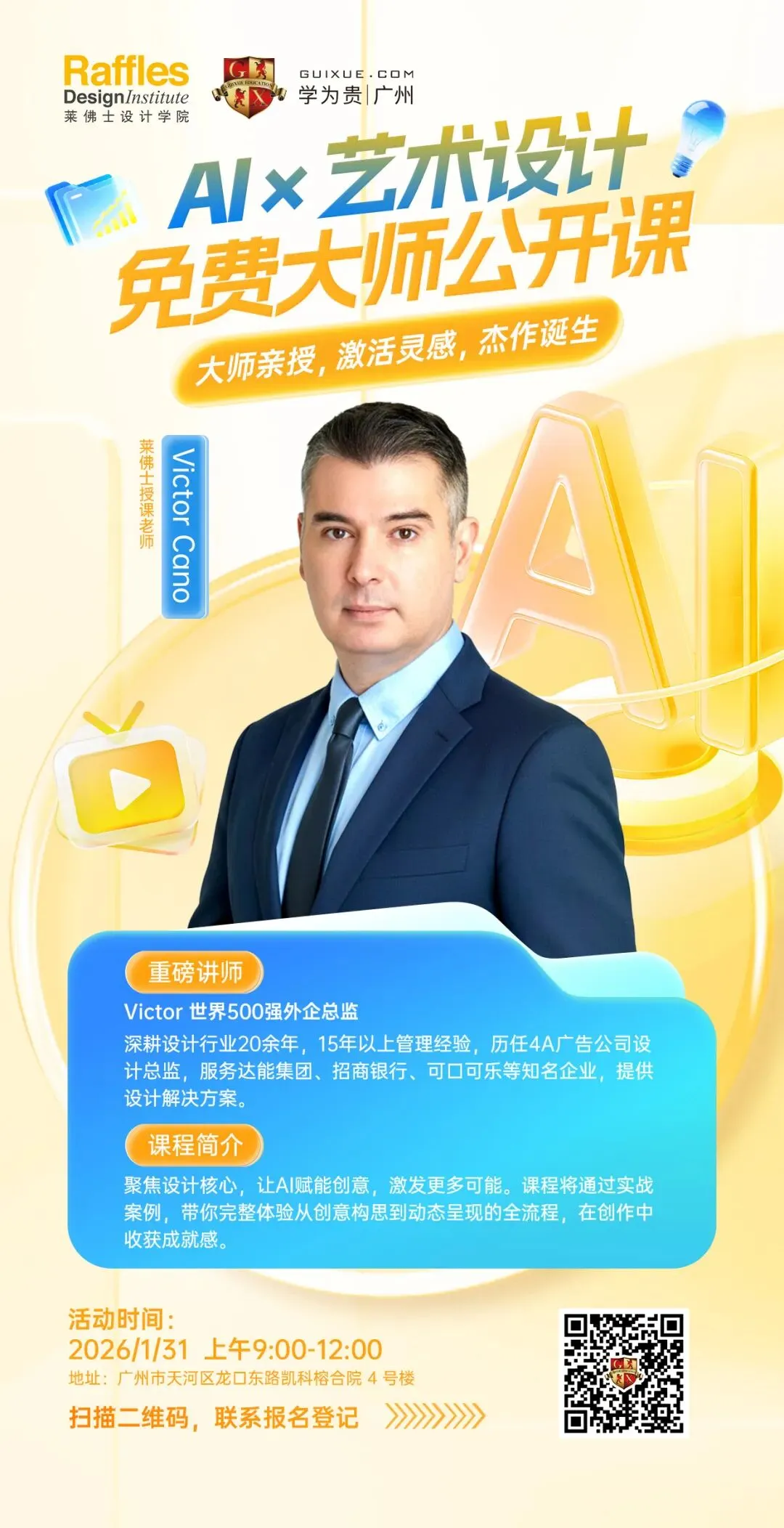 无论你是设计师、创业者、学生,还是对视觉创作感兴趣,这场由设计大师亲授的免费体验课,都将为你打开一扇通往“AI+设计”未来世界的大门。