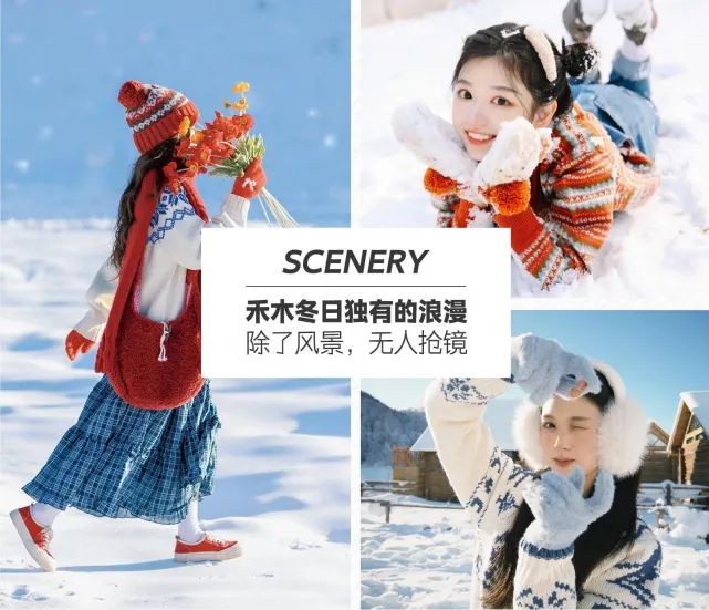 【禾木旅拍】专业摄影师轻旅拍,赠送9张简修照片,提供简单服装,美拍道具,披风,滑雪服...