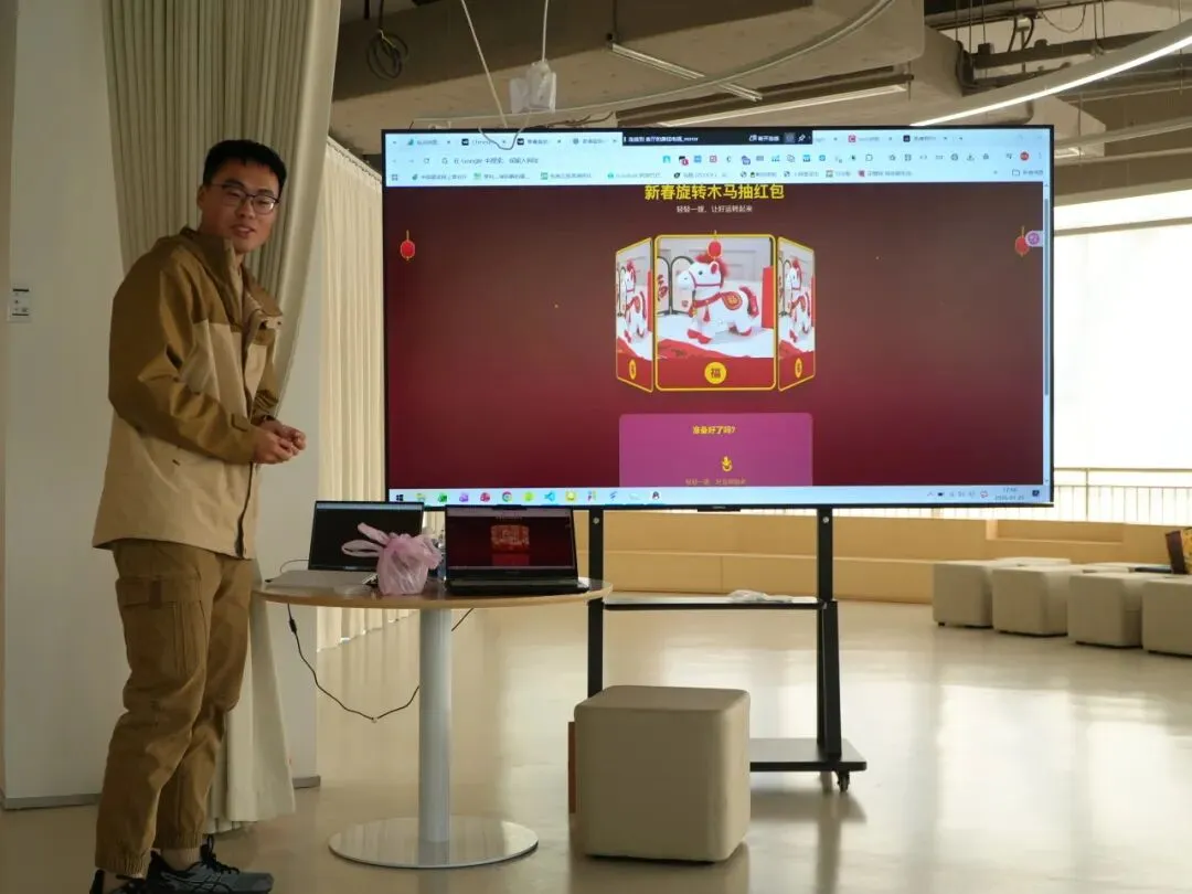 创作环节中,参与者们根据兴趣分为AI编程、AI视频创作、周边设计三大赛道,展开热烈讨论与共创。经过了1.5小时的沉浸式打磨,现场共诞生7件优质作品——包括1部融合东莞城市特色与新春氛围的AI主题宣传视频、一系列兼具实用性与设计感的新春周边设计图,以及5个功能丰富的AI编程新春交互小游戏和网页应用。这些作品既紧扣春节传统文化主题,又充分展现了AI技术在内容创作、软件开发等领域的多元应用,实现了科技与传统的巧妙融合。