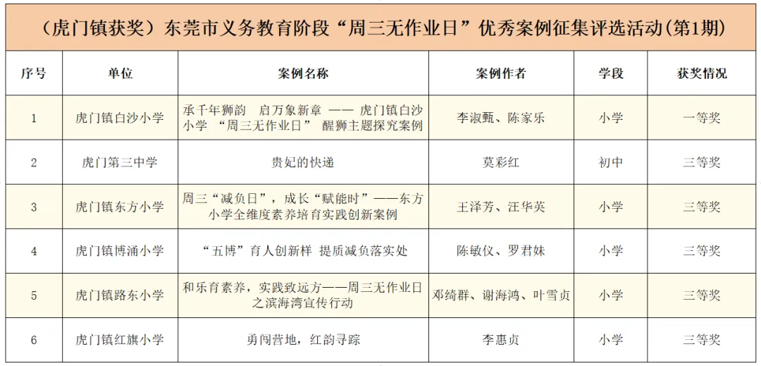 喜报!虎门镇报送的多个作品在东莞市义务教育阶段“周三无作业日”优秀案例征集评选活动(第1期)中获奖