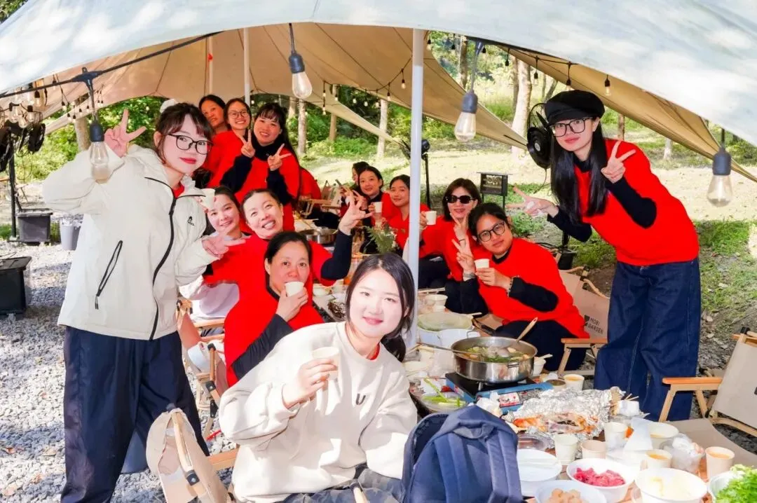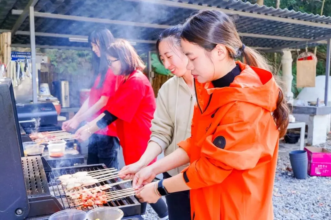 徒步结束后,围坐一起,共享美食,在烟火气中感受团队的温暖与惬意。
