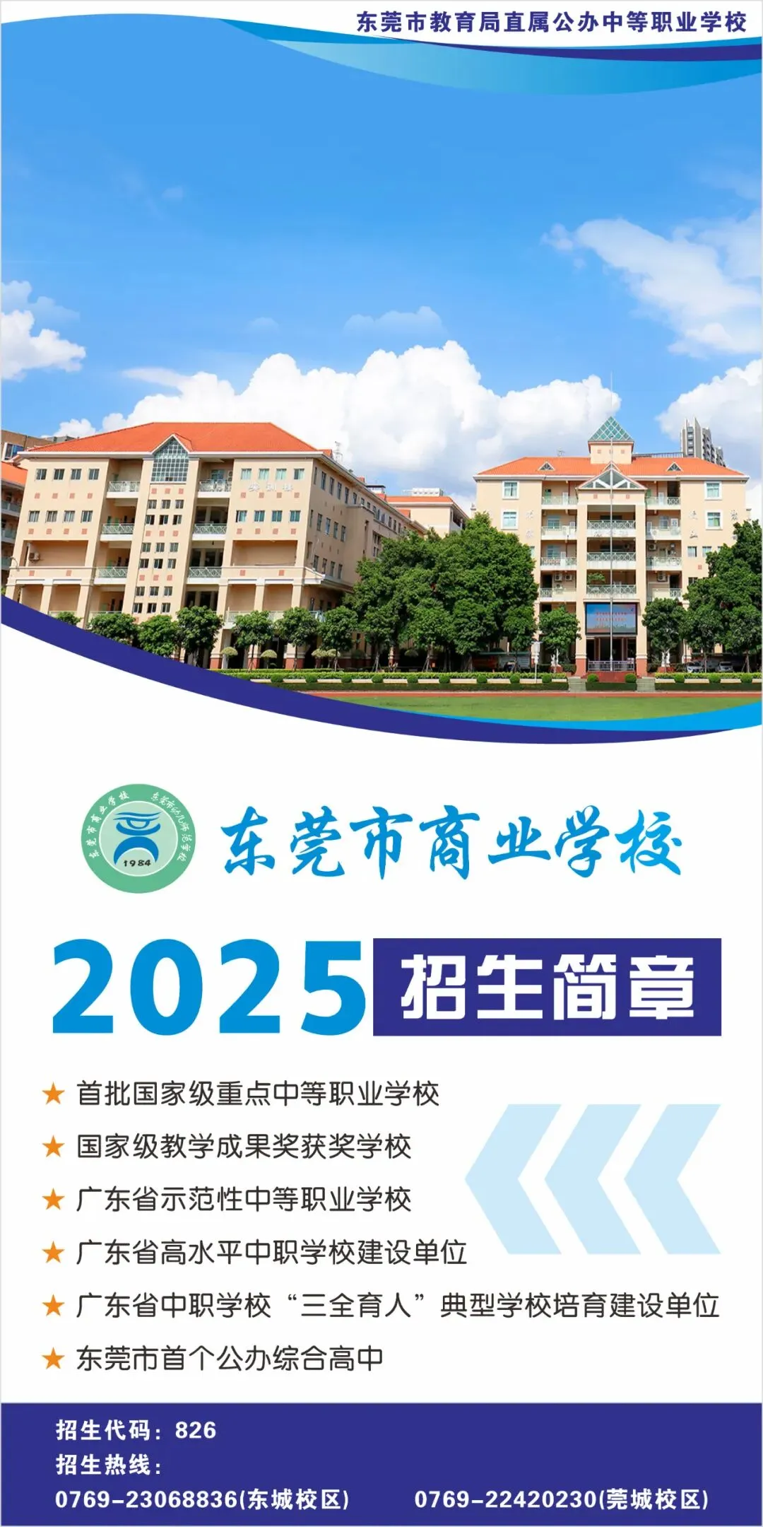 东莞市商业学校创办于1984年,是“东莞市改革开放后成立的第一所公办职业中学”(《东莞市志》记载),是市直属公办学校。