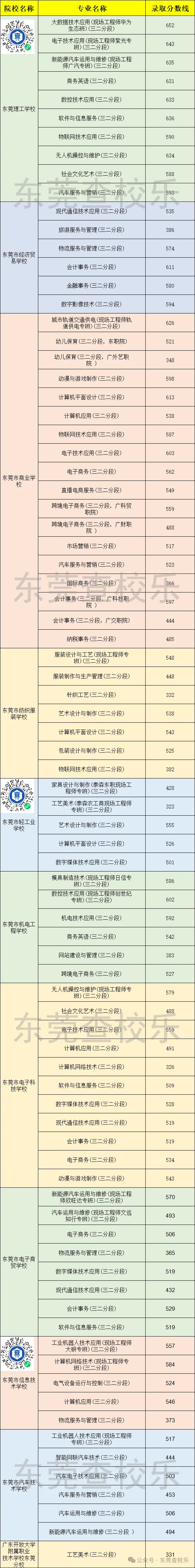 以下整理了2025年东莞公办中职三二分段招生数据(2026年以官方最新公布为准),涵盖招生公办中职学校、专业及录取分数线: