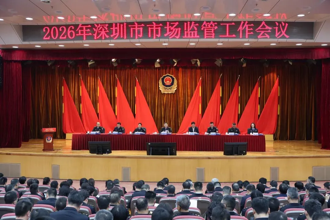 1月27日,深圳市市场监督管理局召开2026年全市市场监管工作会议。会议以习近平新时代中国特色社会主义思想为指导,全面系统深入贯彻党的二十大和二十届历次全会精神,深入贯彻落实党中央决策部署和省、市部署要求,总结2025年和“十四五”工作,分析研判形势,部署2026年重点任务。市市场监管局党组书记、局长蔡英权以《聚力奋进、立标争先,奋力推动“十五五”特区市场监管事业走在前作示范当标杆》为题作工作报告。