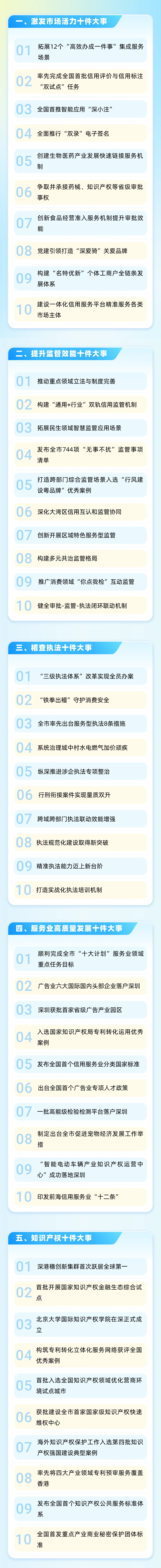 突出企业帮扶、产业赋能,全市经营主体数量和创业密度稳居全国城市首位,智能光电传感技术创新中心等一批国家级平台落地,制定发布国际国内标准千余项,知识产权多项核心指标持续领跑,深港穗创新集群跃居全球第一,在服务经济社会高质量发展上结出新硕果。