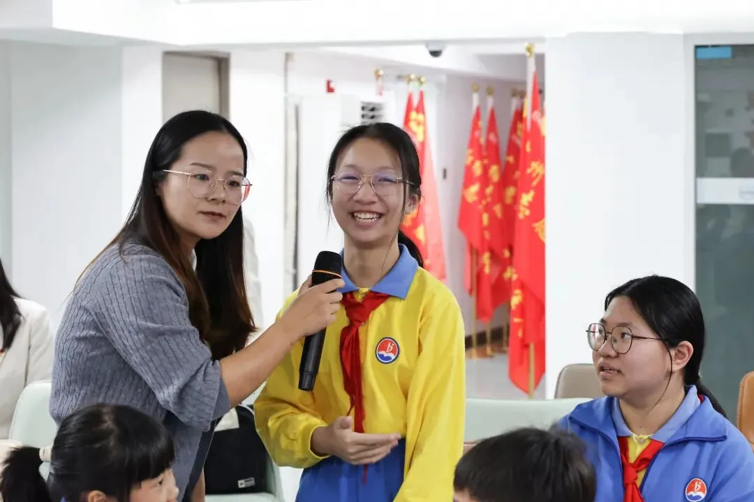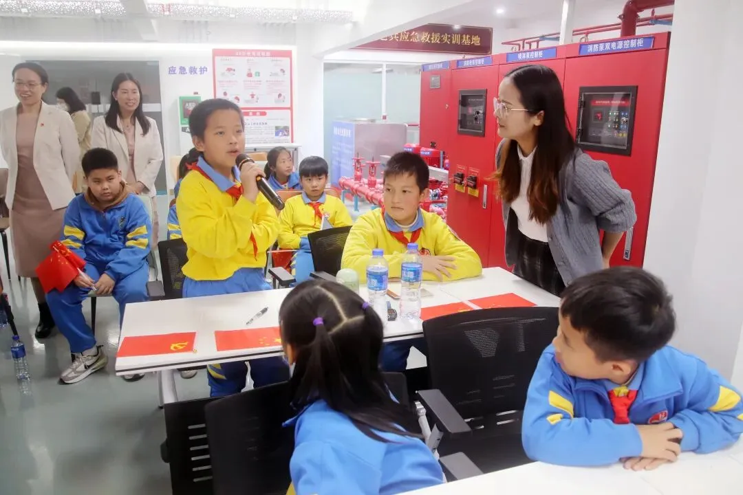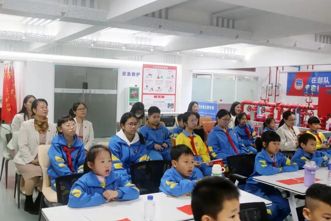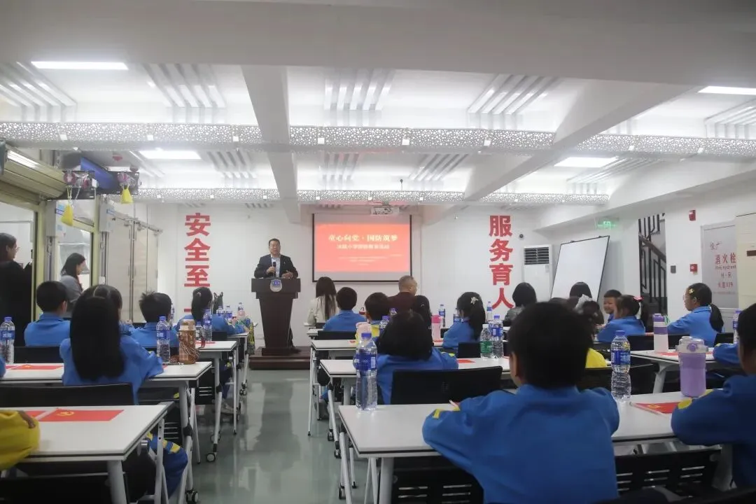 10时45分,师生们移步会议室开展座谈交流,活动由宣讲员易袁娇子主持。新塘街道国防教育中心主任郑本林首先致辞,他向沐陂小学师生的到来表示欢迎,他还向同学们提出了四点建议,孩子们能成为爱国精神小达人,国防知识小达人,身心强健小达人,勇于创新小先锋,他希望此次活动能成为学生们了解国防、热爱国防的起点,鼓励少年们以青春之姿担国防之责。