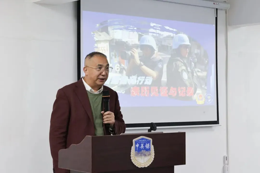 随后,党建指导员张振贵主任以《中国警察参加联合国维和行动经历》为题,为在场师生带来了一场震撼心灵的分享,成为本次活动的核心亮点。张主任结合自身维和经历,用朴实的语言、鲜活的案例,将大家的思绪拉到了战火纷飞的维和任务区。他详细讲述了他参加的联和国维和部队参与了多次的维和行动,向孩子们分享海地地震、利比亚等任务的经历。