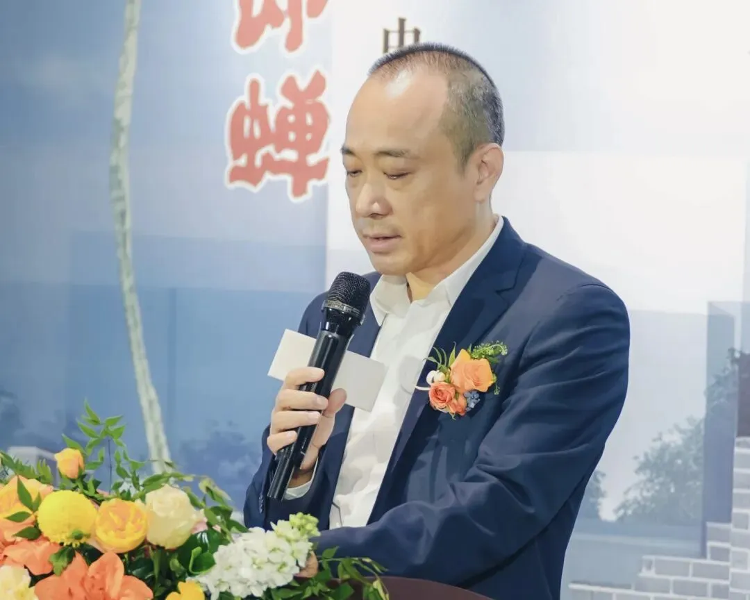 ▲深圳潮青会名誉主席、深圳市臻木堂文化传播有限公司董事长、臻木堂艺术馆馆长陈锦通致辞