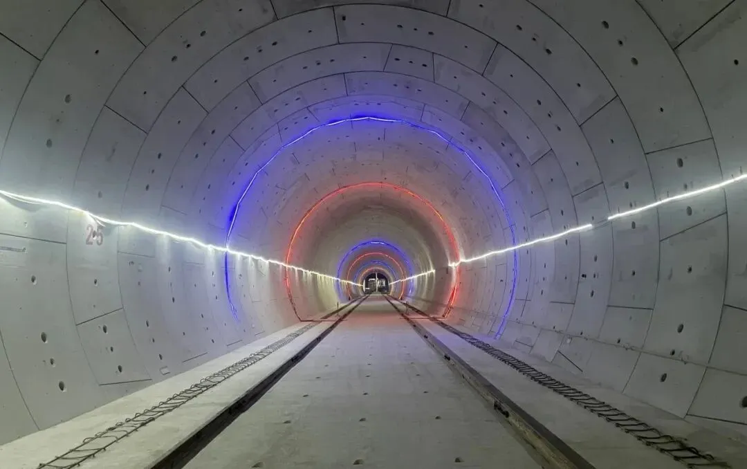 为攻克这一系列难题,项目建设者创新施策、精准发力,在双线之间设置0.6米厚玻璃纤维筋混凝土隔离墙,筑牢安全防护屏障;创新采用纵缝滑入式CT连接件与环缝插入式快速连接件替代传统螺栓,大幅提升管片拼装精度;同时依托全过程数字化监测系统与内支撑台车动态保护技术,有效抑制施工对周边土体及已成型结构的扰动,确保工程安全高效推进。