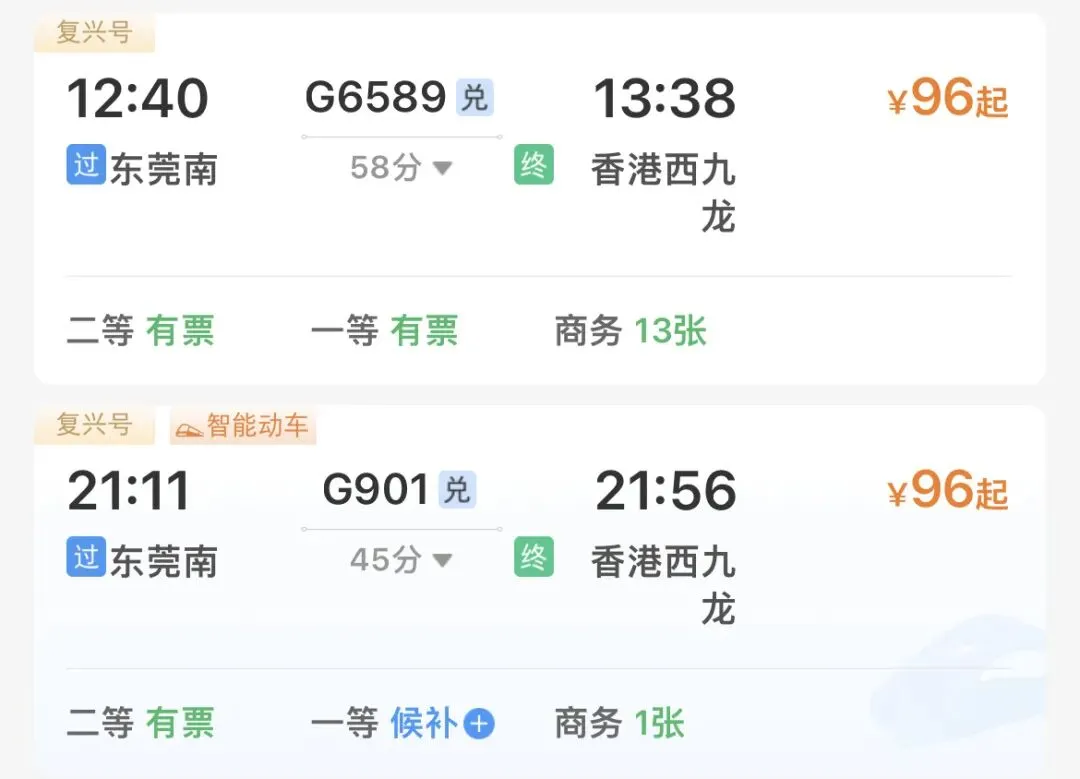 去程:G6589 12:40-13:38