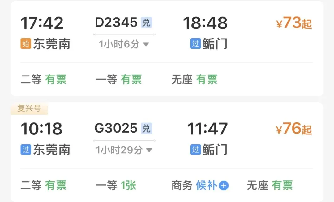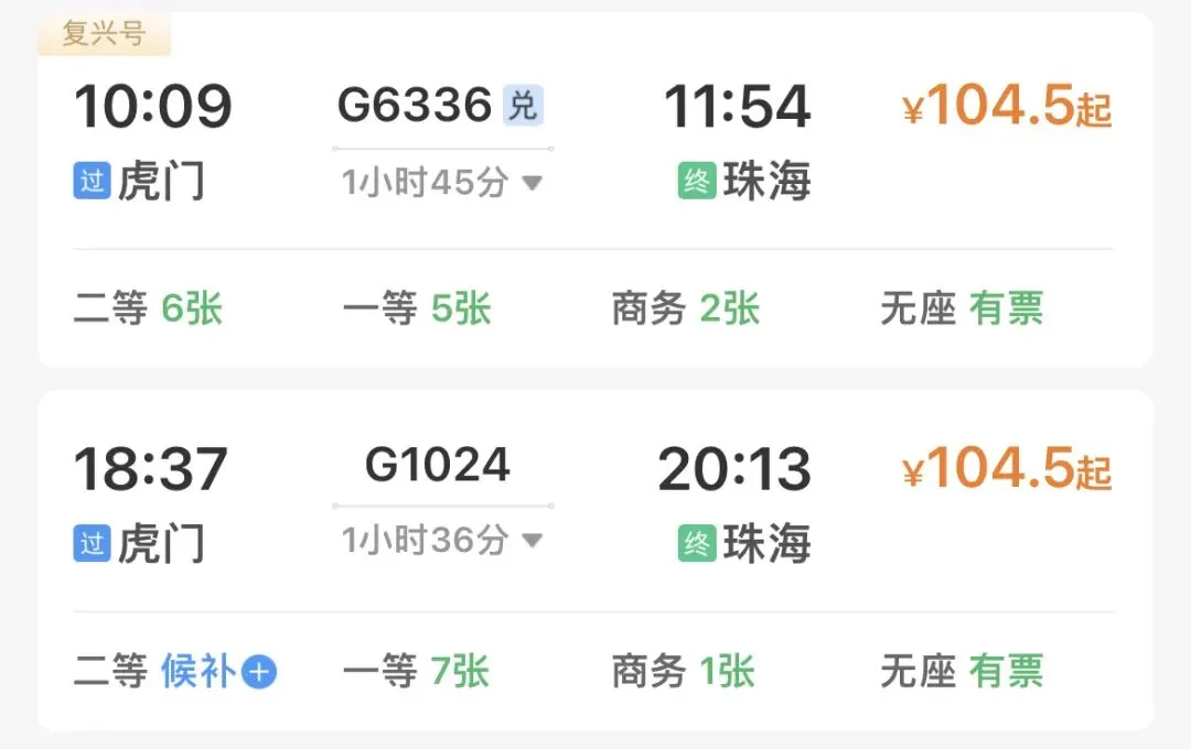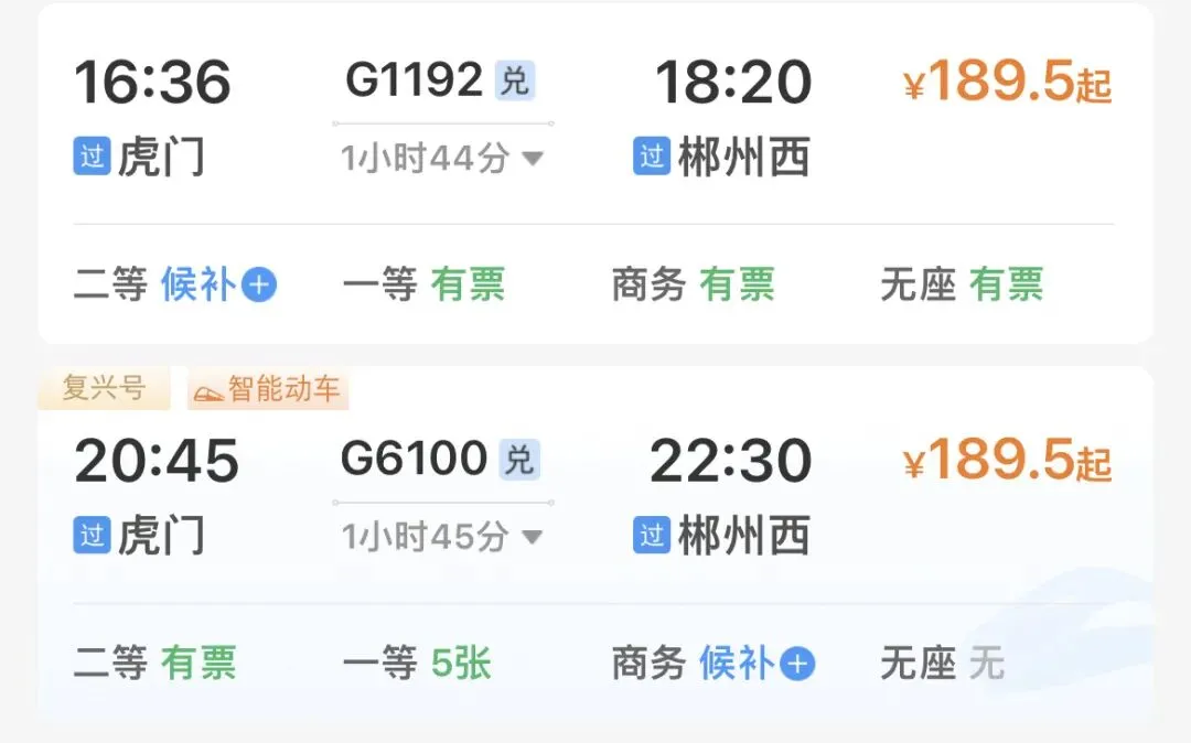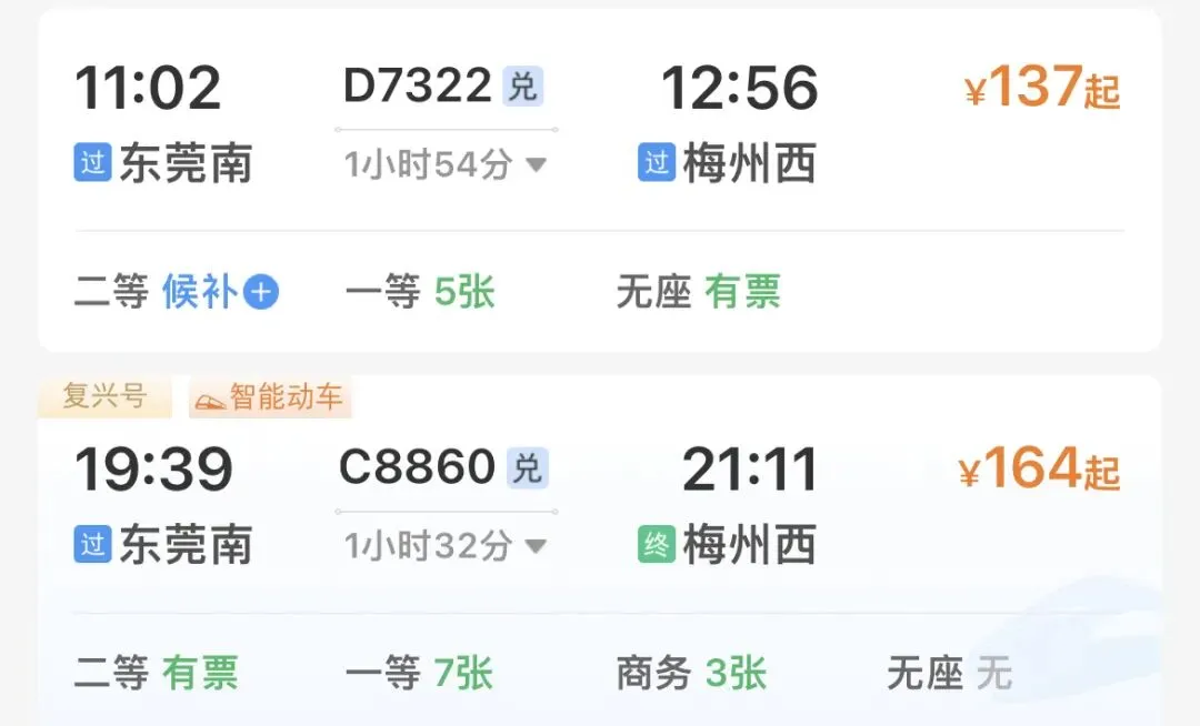 🚅推荐车次: