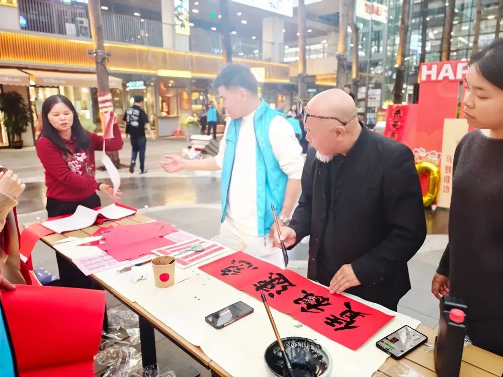 会员和乡贤们热情高涨,纷纷根据自己的心愿向老师请教定制内容。有的期盼家庭和睦,有的祝愿生意兴隆,有的向往平安顺遂。老师们耐心地聆听每一份诉求,挥毫泼墨间精准地传递着大家的心意。现场墨香弥漫,掌声不断。