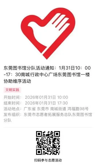 活动内容:南城行政中心广场东莞图书馆一楼协助维序。