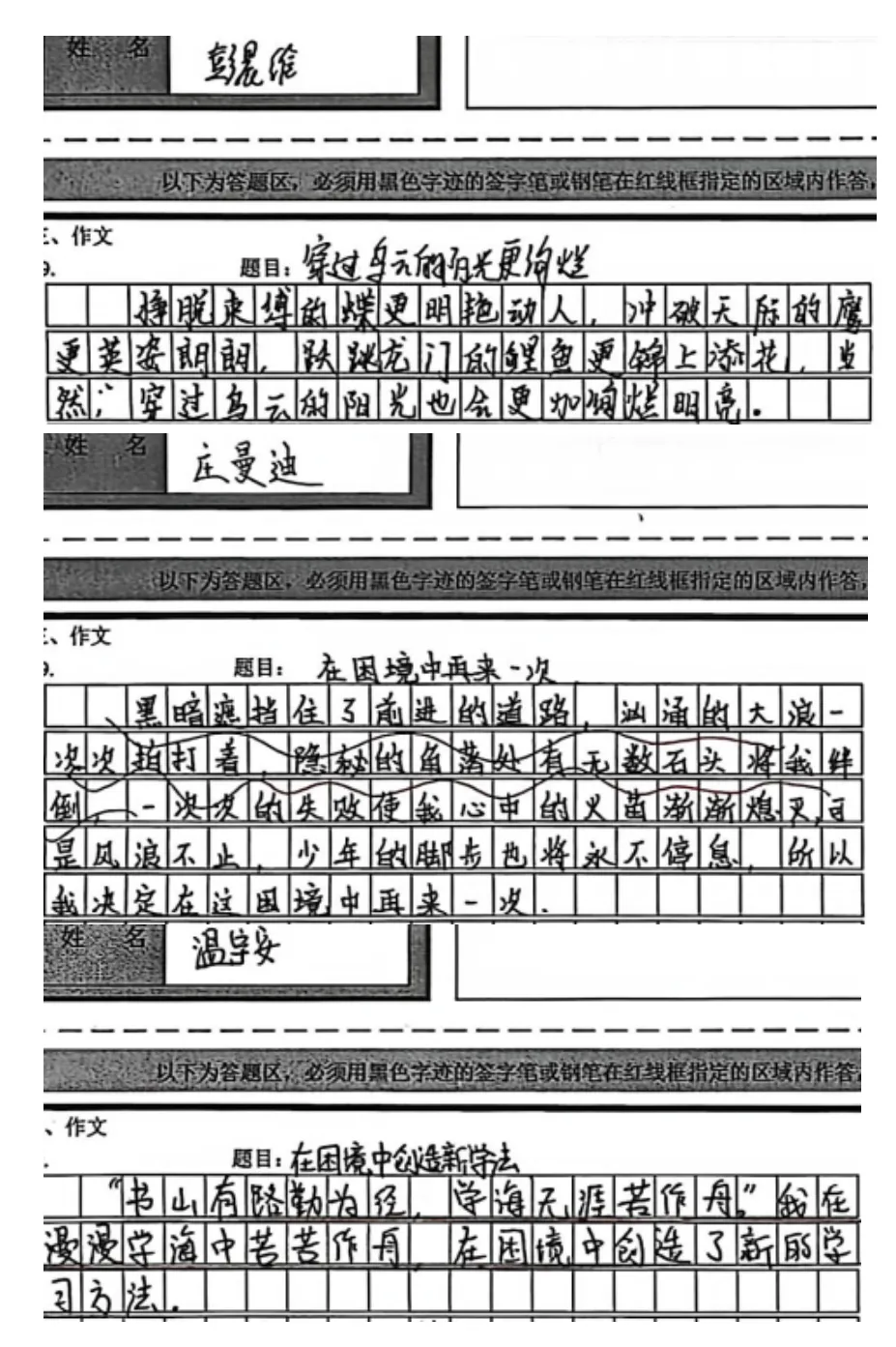 很快到了我心态的转折点,那是初中之后的第一场期中测试,开始考数学时我的心中还胡思乱想着:父母失望的眼神,同学话中的讥讽,老师无奈的摇头,这些画面控制着我的心神,使我的思绪无法冷静。