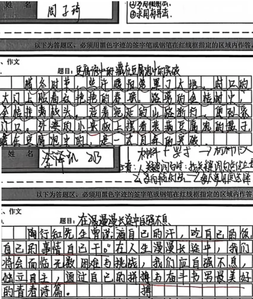 “叮零零”伴随着考试铃的响起,考生们个个开始奋笔疾书,我也是如此。也许是有些紧张,一路上做题的嗑嗑绊绊,听着身边的人渐渐翻页的声响,再看看我这才写了几题的卷子。我顿时慌了,思绪犹如一团毛线凌乱不堪。