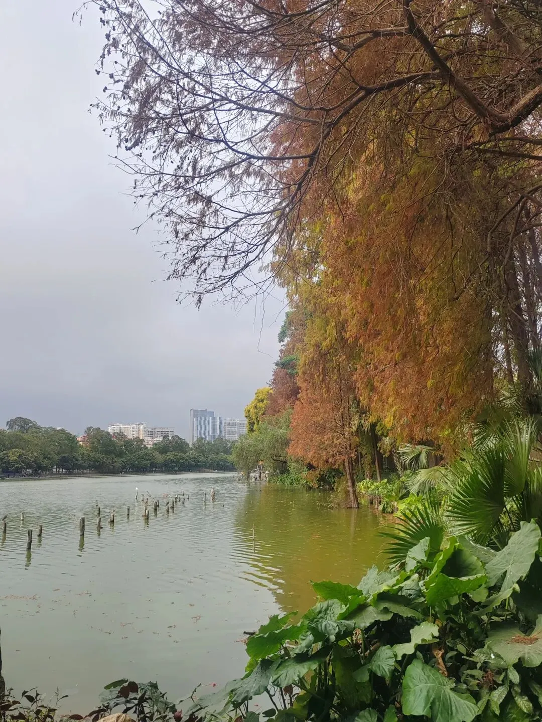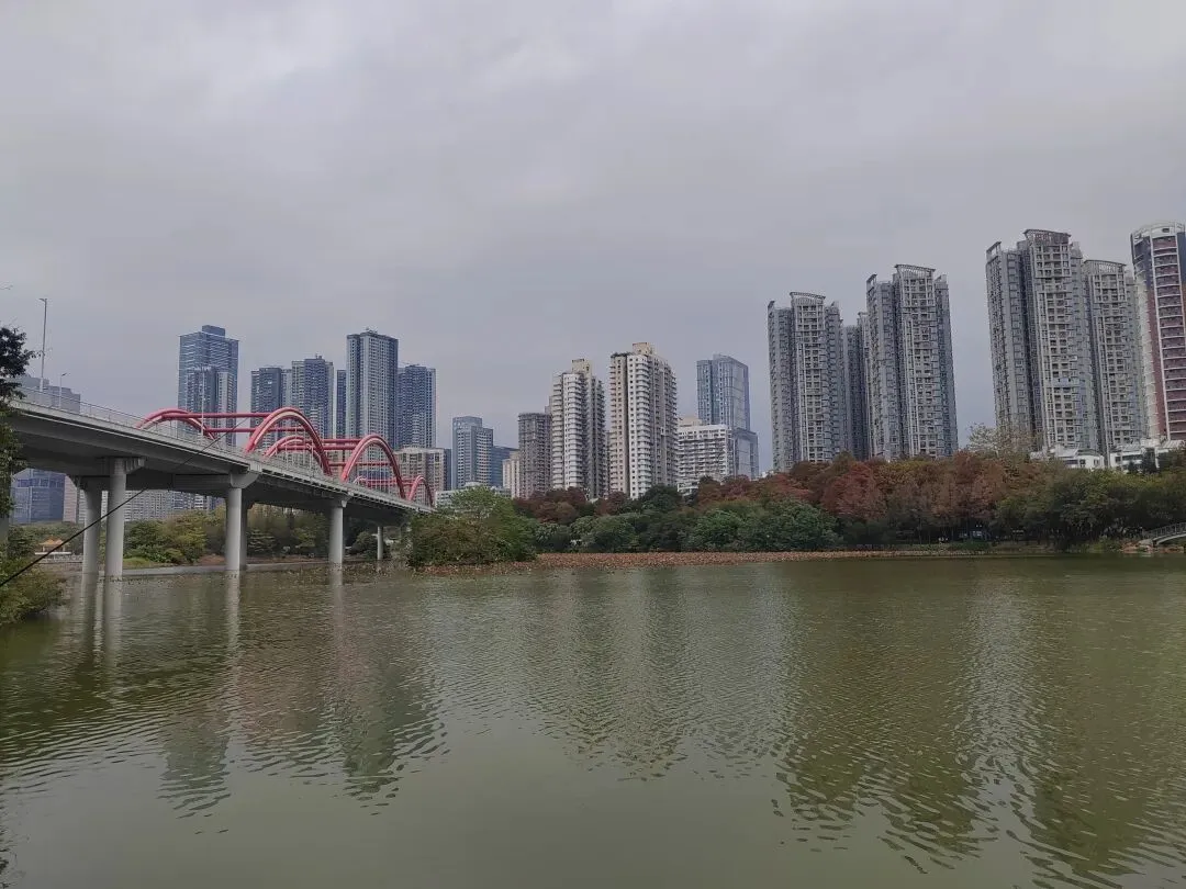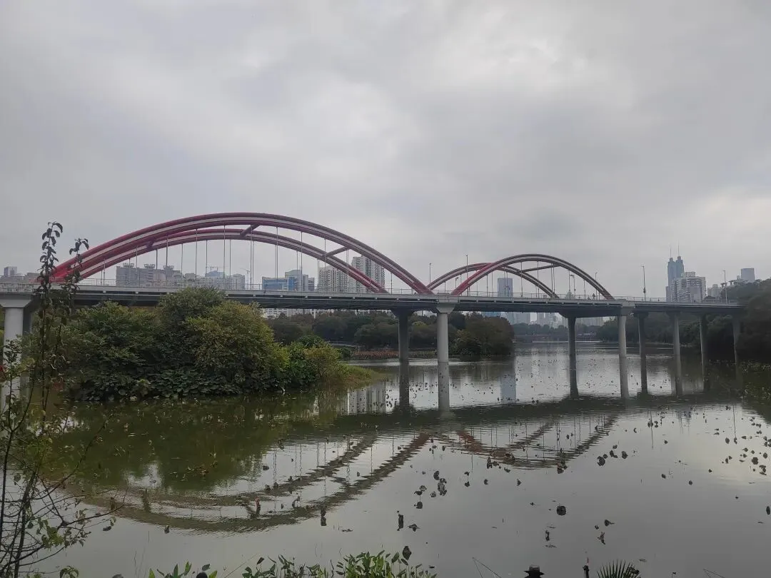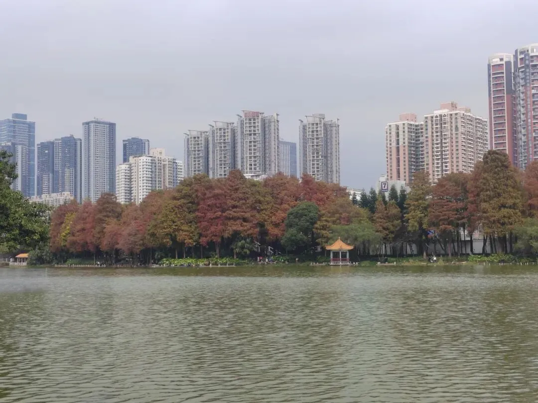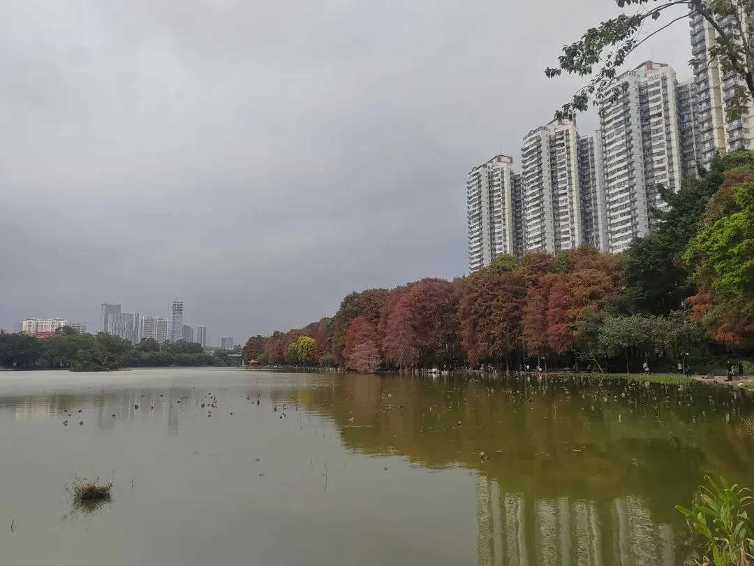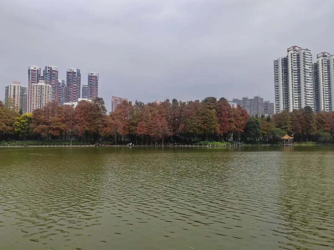 虽然不是盛夏,暂时看不到每年的荷花展。但如今水面上零星的小荷,也别有一番雅致。岸边的鸟儿闲庭信步,若有所思的样子。几乎不惧怕游人,我在旁边的休息长椅坐着,它也旁若无人地走来走去。这足以证明此处人与鸟儿相处得多么融洽。湖面之上,有几处亭楼连廊,可供大家闲坐观赏风景。是日见到十来个大妈聚在亭子里唱歌,占得一方空间,几乎没有游人靠近,本无可厚非,但当时感觉有点过犹不及。远处红色的拱型桥,也是洪湖公园的典型美景。虹桥与水面的倒影,形成了一幅美丽的风景画。湖边许多人在垂钓,公园的猫咪也不时走近,等候钓鱼者的投喂。岸边步道行人走过会放慢脚步,交谈的人儿也会放低音量,一切都那么的融洽。与湖面另一面的大妈KTV相比,我感觉好多了。要说环境之美尚可堆造,但这闲适的人文气息确是不可复制的。我相信一个地方的魅力,人在其间的影响比重理应是巨大的。身为地方居民,应该为自己的地方加分,注意在公共环境中的言行举止。彼岸连绵不绝的一排落羽杉,更是此行的一个巨大惊喜。之前我认为宝安的九围湿地公园的落羽杉栈道在深圳应该无敌了,此时面对眼前的风景,我又动摇了。来到彼岸,这边的花,这边的水杉,美得让人走不动。摄影爱好者聚集此地,有带着模特人儿的,有拍鸟儿的,也有直拍风景的。爱摄之人,根本无力抵抗这样的美景,脚都拔不动,久久的停留在此。虽然我迫切的希望通过我的照片和只言片语告诉你我所感受到的震撼感受,但确实能力之所及不足一二,仅供您参考参考,有机会你也自己来亲自体验吧。个人表示我很喜欢,推荐这里。最后,感谢你耐心阅读至此,希望得到你的点赞关注支持,感谢。🙏