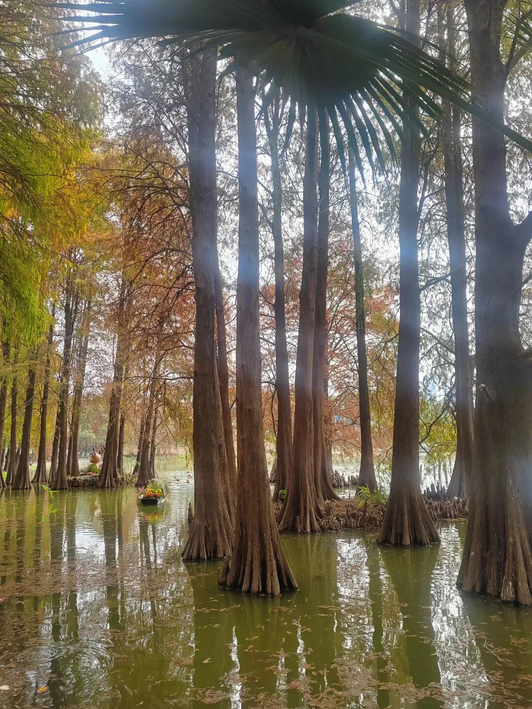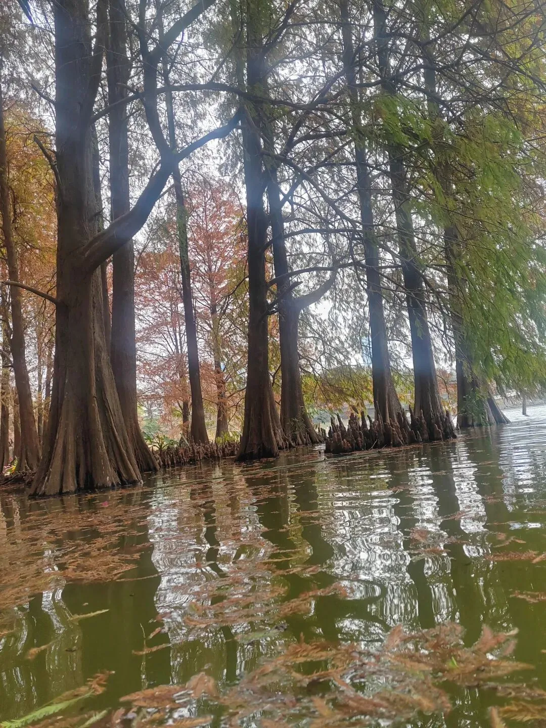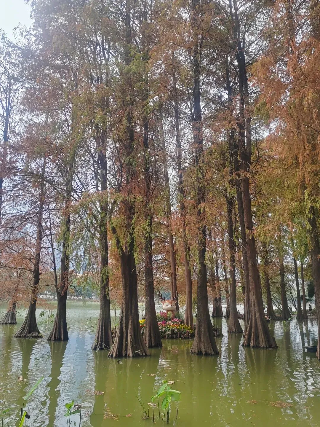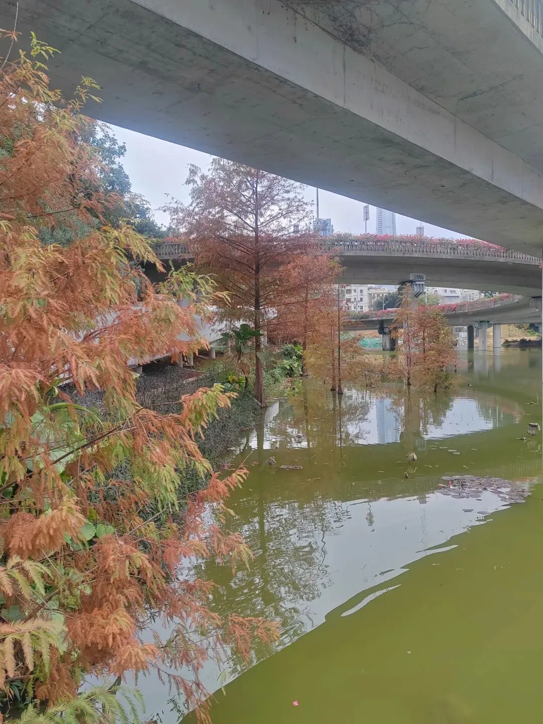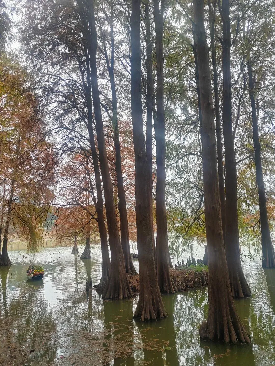 虽然不是盛夏,暂时看不到每年的荷花展。但如今水面上零星的小荷,也别有一番雅致。岸边的鸟儿闲庭信步,若有所思的样子。几乎不惧怕游人,我在旁边的休息长椅坐着,它也旁若无人地走来走去。这足以证明此处人与鸟儿相处得多么融洽。湖面之上,有几处亭楼连廊,可供大家闲坐观赏风景。是日见到十来个大妈聚在亭子里唱歌,占得一方空间,几乎没有游人靠近,本无可厚非,但当时感觉有点过犹不及。远处红色的拱型桥,也是洪湖公园的典型美景。虹桥与水面的倒影,形成了一幅美丽的风景画。湖边许多人在垂钓,公园的猫咪也不时走近,等候钓鱼者的投喂。岸边步道行人走过会放慢脚步,交谈的人儿也会放低音量,一切都那么的融洽。与湖面另一面的大妈KTV相比,我感觉好多了。要说环境之美尚可堆造,但这闲适的人文气息确是不可复制的。我相信一个地方的魅力,人在其间的影响比重理应是巨大的。身为地方居民,应该为自己的地方加分,注意在公共环境中的言行举止。彼岸连绵不绝的一排落羽杉,更是此行的一个巨大惊喜。之前我认为宝安的九围湿地公园的落羽杉栈道在深圳应该无敌了,此时面对眼前的风景,我又动摇了。来到彼岸,这边的花,这边的水杉,美得让人走不动。摄影爱好者聚集此地,有带着模特人儿的,有拍鸟儿的,也有直拍风景的。爱摄之人,根本无力抵抗这样的美景,脚都拔不动,久久的停留在此。虽然我迫切的希望通过我的照片和只言片语告诉你我所感受到的震撼感受,但确实能力之所及不足一二,仅供您参考参考,有机会你也自己来亲自体验吧。个人表示我很喜欢,推荐这里。最后,感谢你耐心阅读至此,希望得到你的点赞关注支持,感谢。🙏