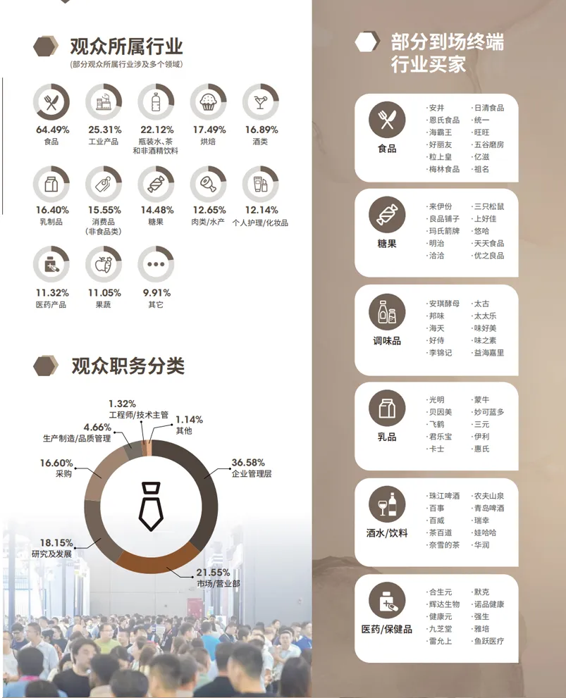 酒/饮料机械、果蔬机械、糕点加工机械、肉类机械、面食机械、豆制品加工设备、调味品设备、巧克力和糖果加工设备、中央厨房及预制菜科技设备等。