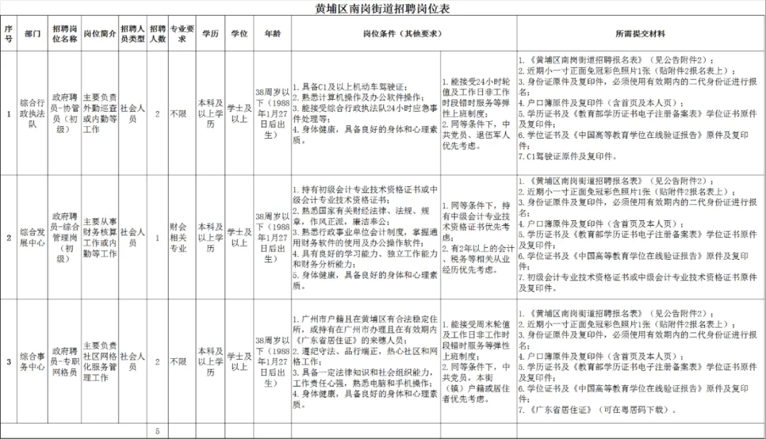 详见附件1黄埔区南岗街道招聘岗位表。