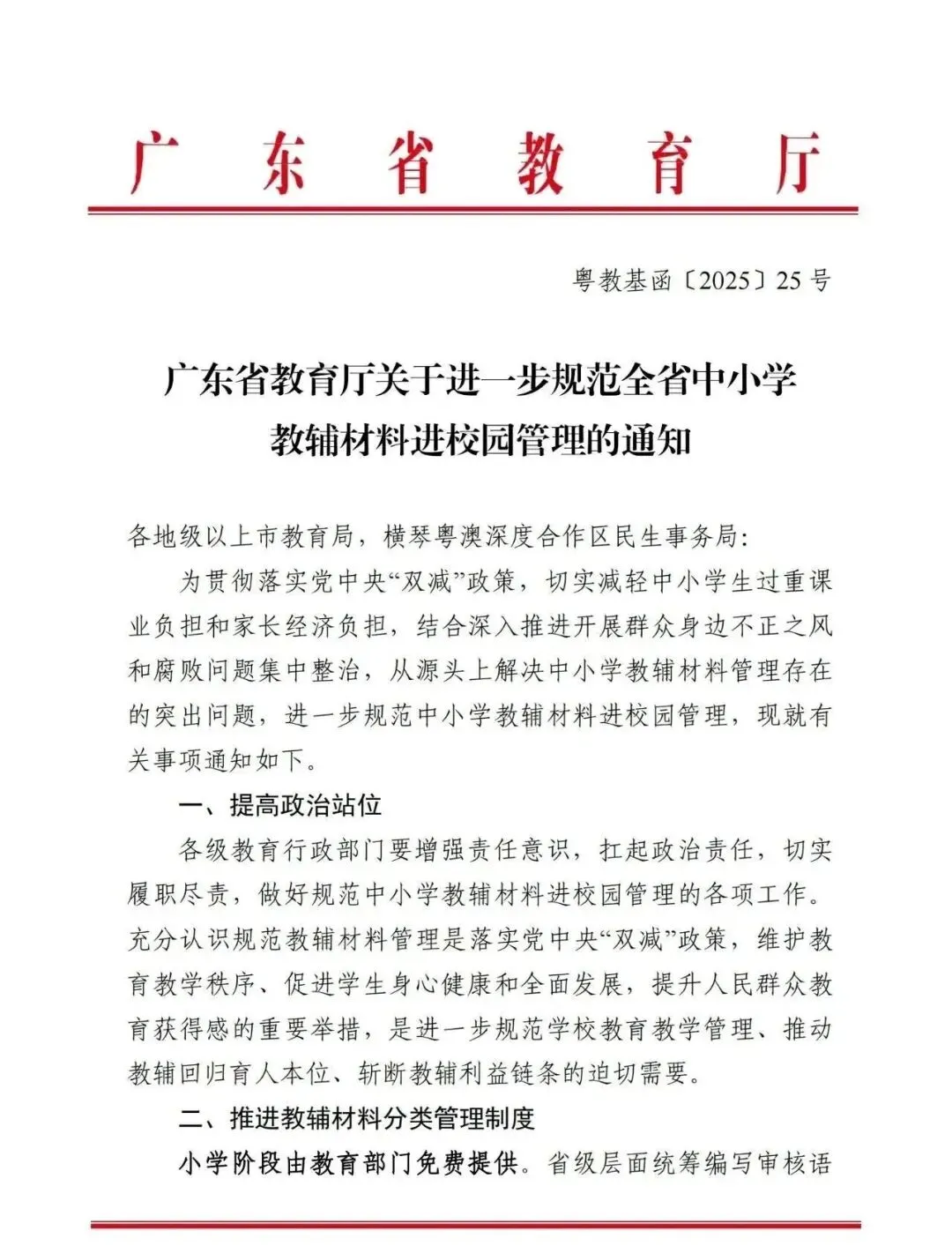 值得注意的是,教辅材料管理并非广东省独有。宁夏教育厅也在9月1日印发了《宁夏中小学教辅材料征订“十个严禁”》,划出了纪律红线。