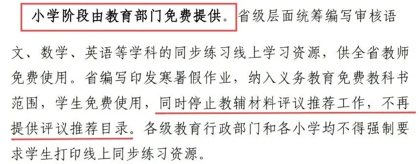 寒暑假作业由省编写,纳入义务教育免费教科书范围;