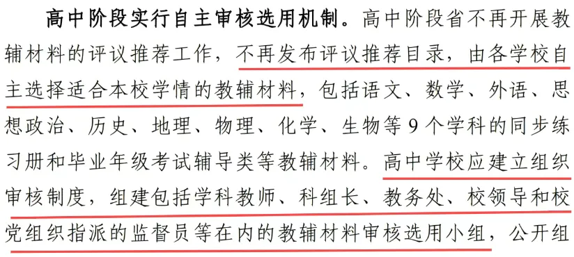 地市可组织审核供本地高中使用的教辅,供不具备能力的学校选择。