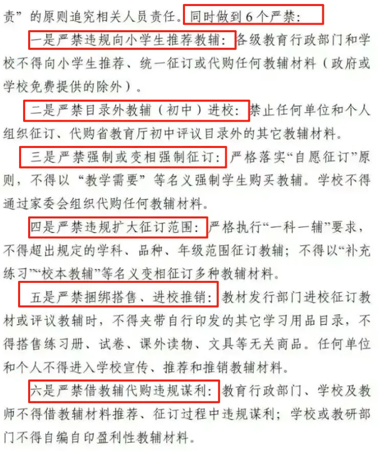 省文件中最受关注的还有就是“六严禁”要求,这些禁止性规定为教辅材料管理划出了明确的红线。
