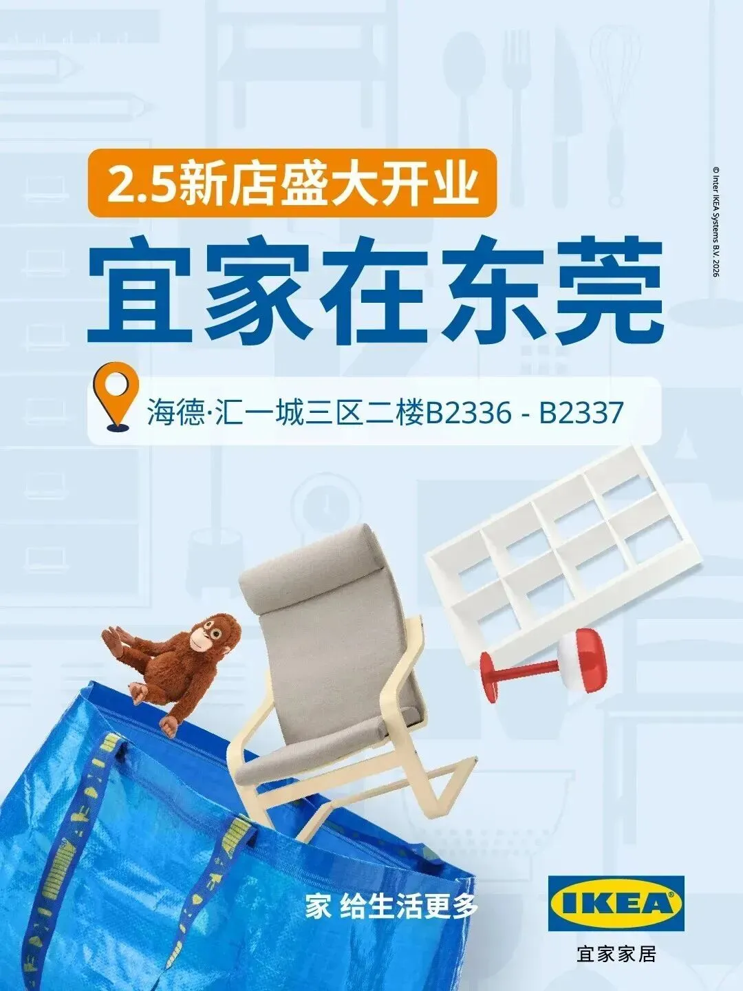 东莞首家宜家,开在汇一城三区二楼(海底捞附近),将于2月5日正式开业!宜家作为全球领先的家具及家居用品零售商,因此大多数常见门店规模都比较大,但位于汇一城的店中店显然面积比较小,属于“小型社区店”,主打生活场景展间和精选小件家居商品,提供快速购物的体验。据了解,2月5日-24日瑞典美食搞活动,经典肉圆8粒9.99元,巧克力买一送一!
