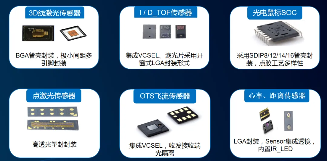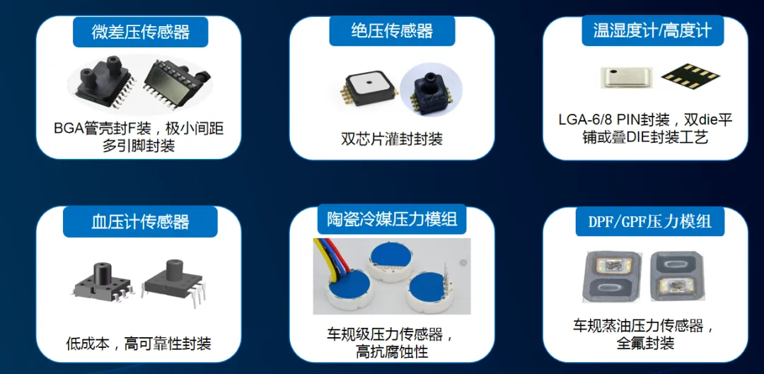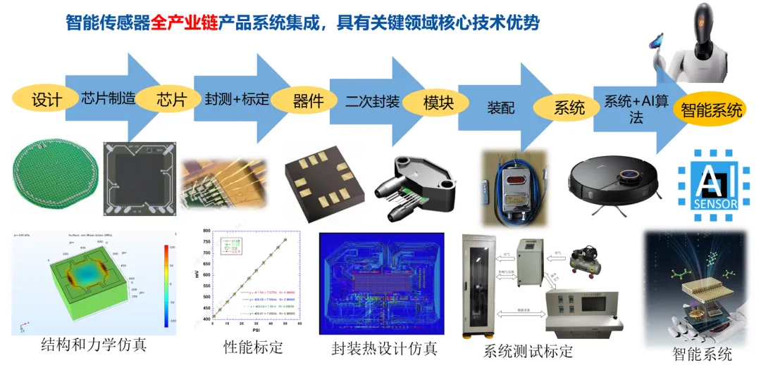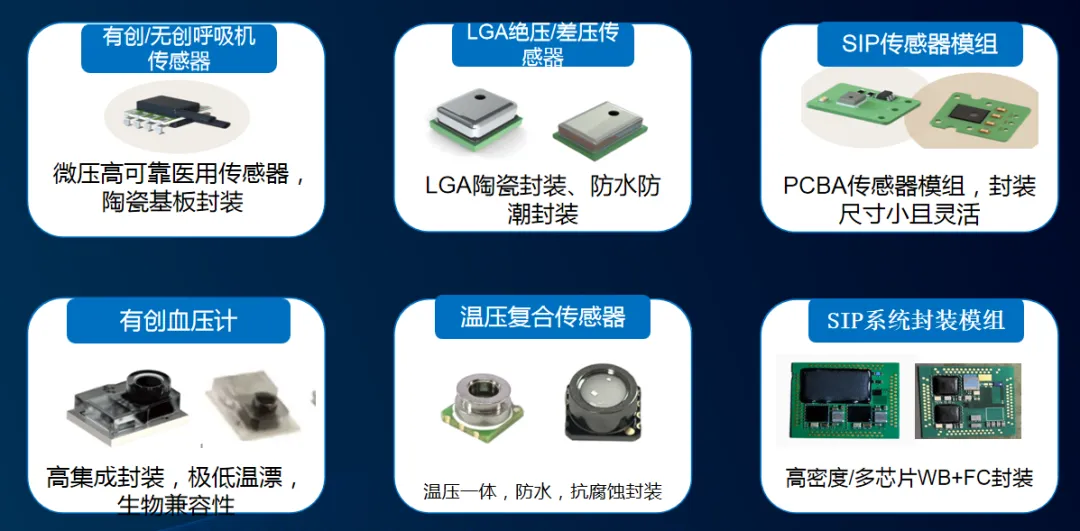 公司拥有全自动固晶机、键合机、点胶机、自动成型/上盖机、激光打标机、自动测试分选机、数模混合测试仪、超声波自动清洗机、高精度恒温烤箱、SMT 贴片机、全自动刷胶机、3D 测量仪等各类专业设备,同时具备完善的质量管理体系(如ISO9001、IATF16949和GJB9001C体系认证)和“承研承制”资格,是国内最大的传感器封测代工平台之一。