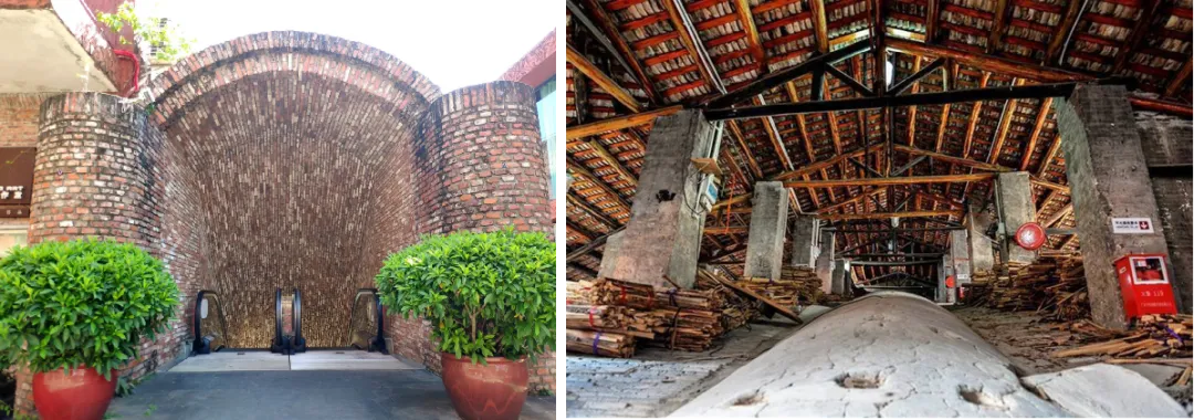 但这些看似破败的建筑,也承载了丰富的历史记忆与文化价值。设计深入挖掘了石湾陶文化的精髓,将其巧妙地融入建筑之中。首先,设计从南风古灶的龙窑中提取灵感,模拟其依山而建、层层递进的形态特点,在新建建筑中引入拱门元素,营造出浓郁的陶艺氛围。同时,利用光影效果模拟陶窑烧制时的烟雾缭绕景象,让游客仿佛置身于古老的陶窑之中,感受那份历史的厚重与匠心的独运。△ 南风古灶