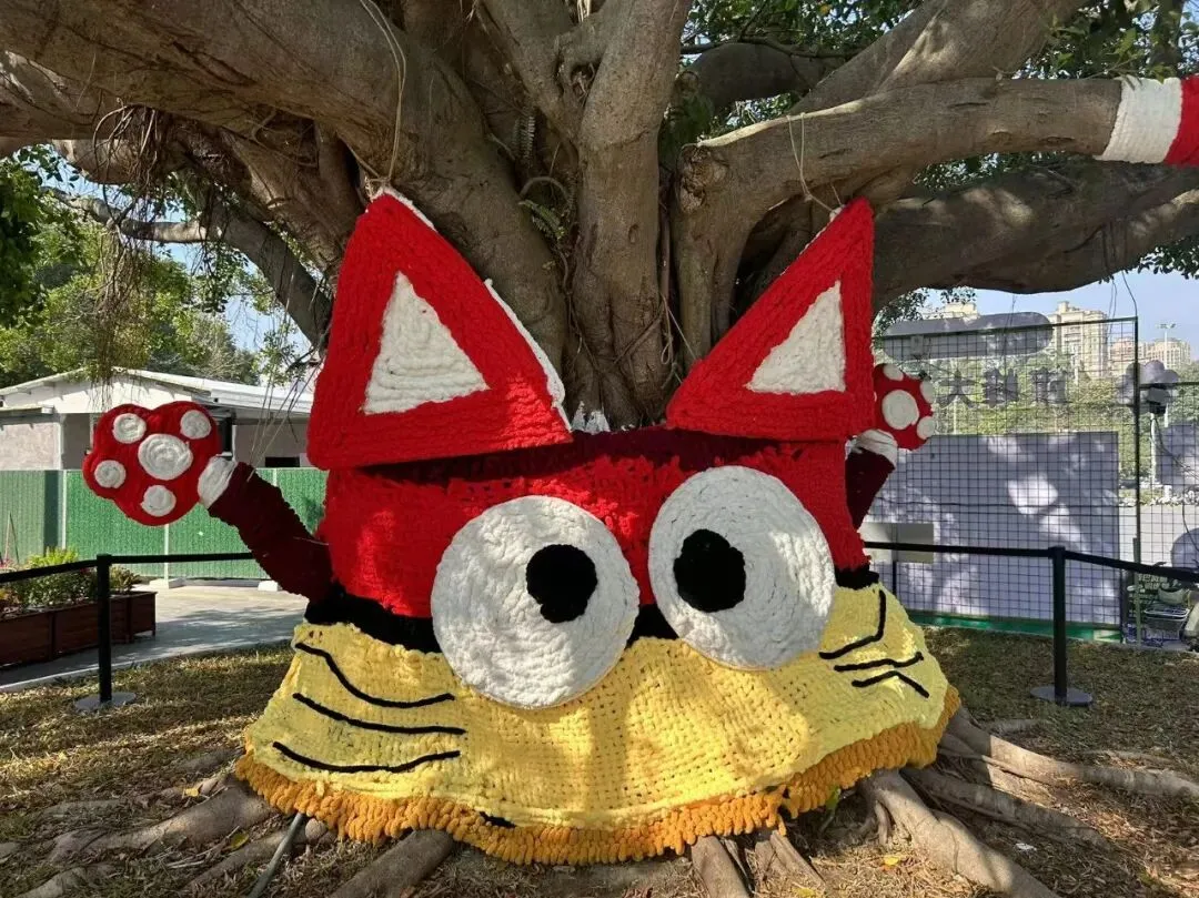公园门口的树上已经穿上了漂亮的针织外套了,可可爱爱,拍照出片。