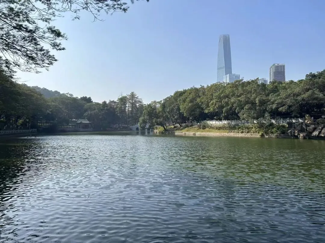 公园很大,还和虎英公园连起来了,可以骑车一圈八公里,也有儿童乐园滑滑梯、挖沙,公园还要不少湖,带娃捞鱼好去处,还能爬山到大灯笼俯瞰东莞市中心,强度也较低,老少皆宜。