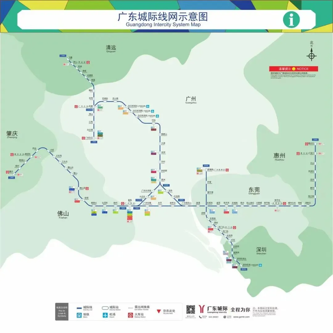 广清城际铁路总里程达到79.9公里,高效串联起广州南站、广州白云站、广州北站、佛山西站、东莞西站、惠州北站、肇庆站、肇庆东站、清远站、广州白云机场、深圳宝安机场等交通枢纽。