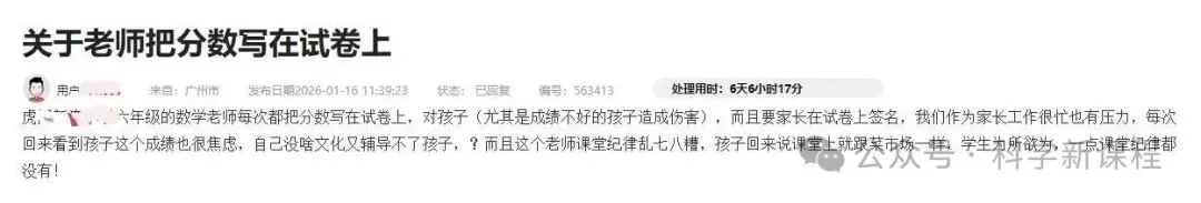 近日,有东莞的小学生家长在问政平台上留言,投诉老师把分数写在试卷上。