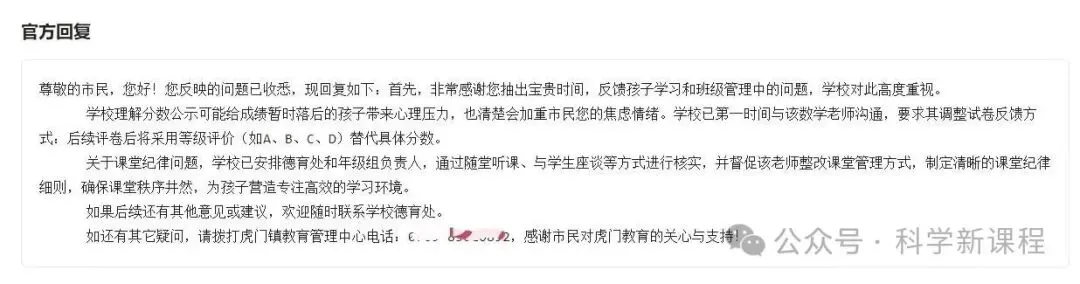 针对该留言,虎门镇教育管理中心公开做出了回复: