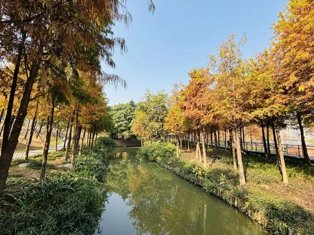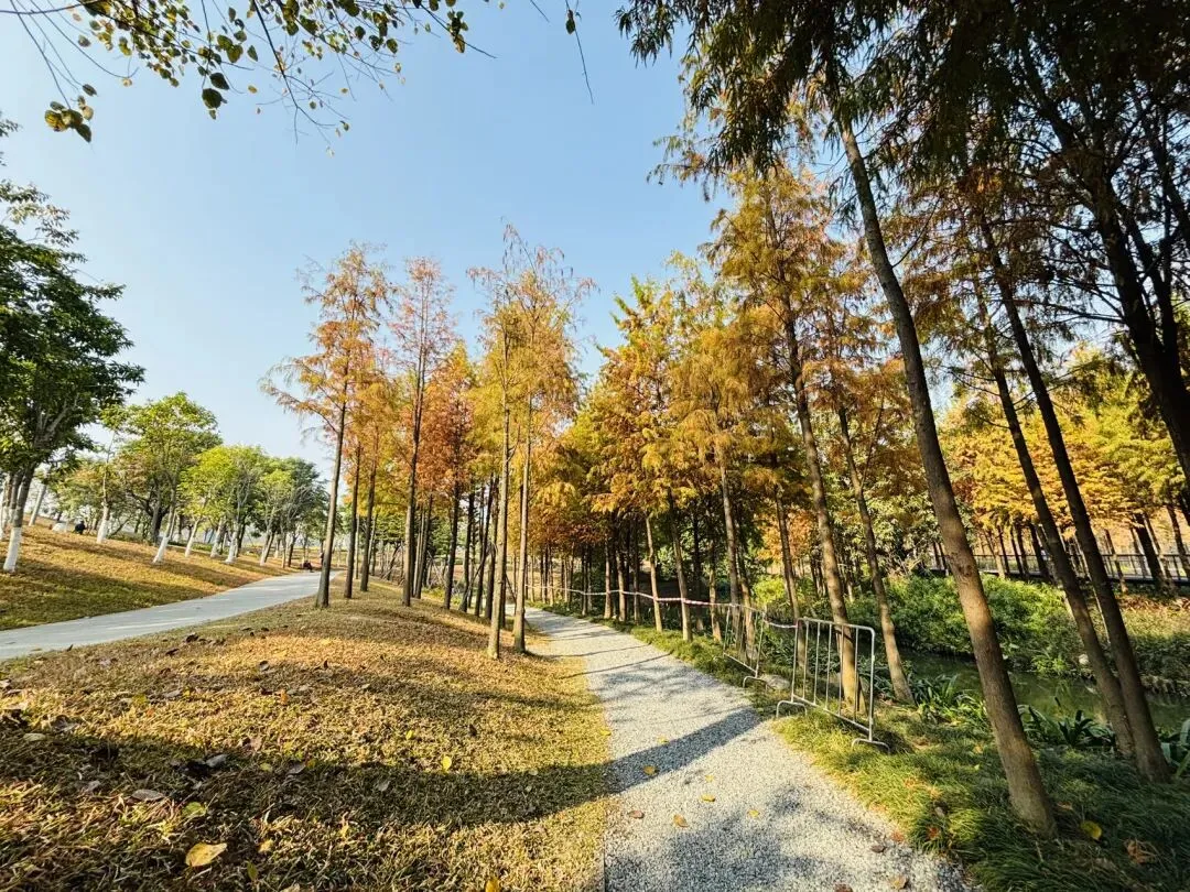 落羽杉作为东莞中心公园内的一大特色,树形优美,羽毛状的叶丛秀丽,尤以其红褐色的针叶著称。在南国的冬日里,它们散发出温柔的暖意,将这片位于城市核心区的绿地空间装点得分外妩媚,微风中,湖畔成列的落羽杉轻轻摇曳,湖面上偶尔掠过的候鸟,共同绘就一幅动人心弦的自然画卷,吸引了无数市民和摄影爱好者前来赏景、拍照留念。