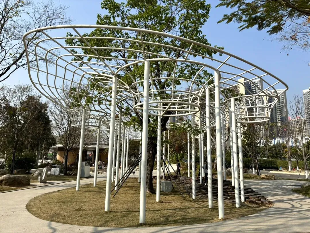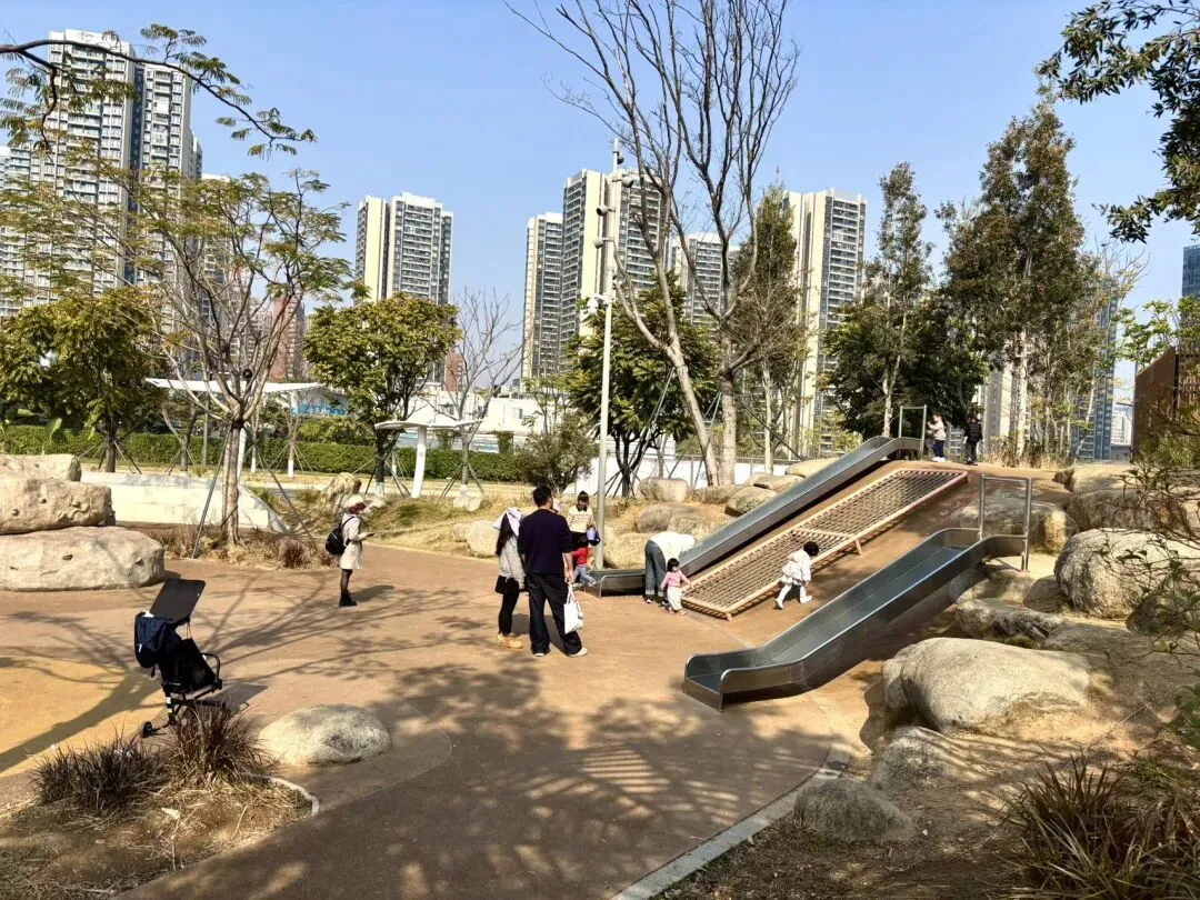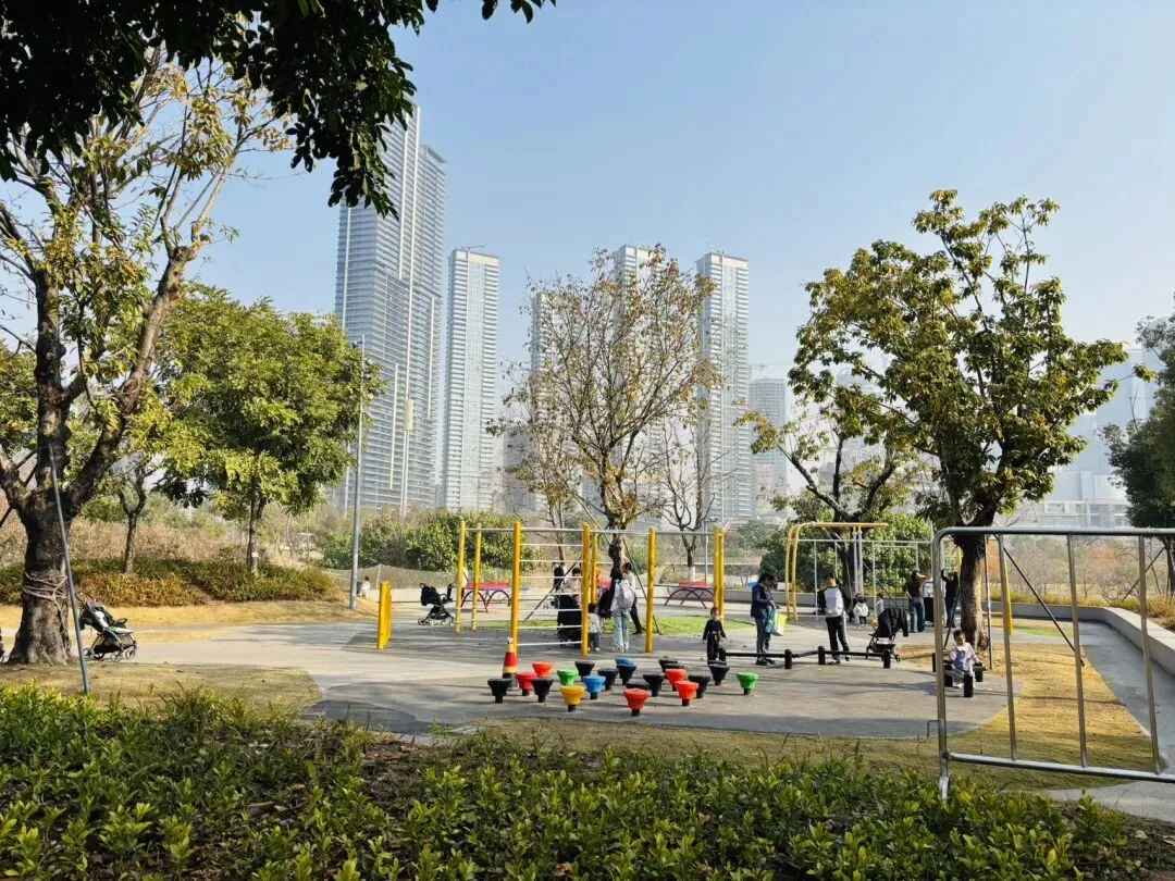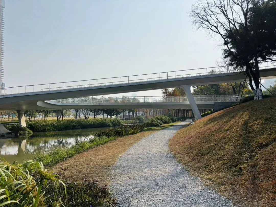 巧妙地将自然水文与景观体验相结合。梳理和拓展现有河涌,构建起蜿蜒贯通的核心水系,形成了灵动的水景视觉廊道,更发挥着重要的雨洪调蓄与净化功能。 精心营造的湿地泡、生态驳岸与水生植物群落,构成了具有生命力的“城市之肾”,默默过滤着地表径流,为生物提供栖息地,也向市民直观展示着自然净化的奥秘。 这种以生态基础设施为先导的“海绵城市”理念实践,使公园超越了一般休闲场所的范畴,成为保障城市韧性的一道关键生态屏障。 东莞中心公园,拿过国际设计大奖,给人“城在园中”的视觉盛宴,一进门就被震撼到,蓝天+绿树+玻璃幕墙高楼,随手一拍都是都市与自然融合的大片。