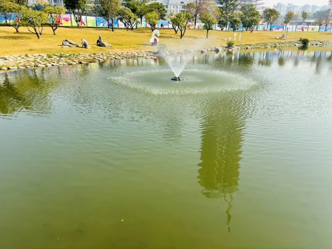 公园的核心景观,湖水清澈,波光粼粼。沿湖漫步,欣赏美景,湖面像镜子一样清澈,倒映着天空和城市,好多鱼儿游来游去,带点面包来喂鱼,小朋友超爱。