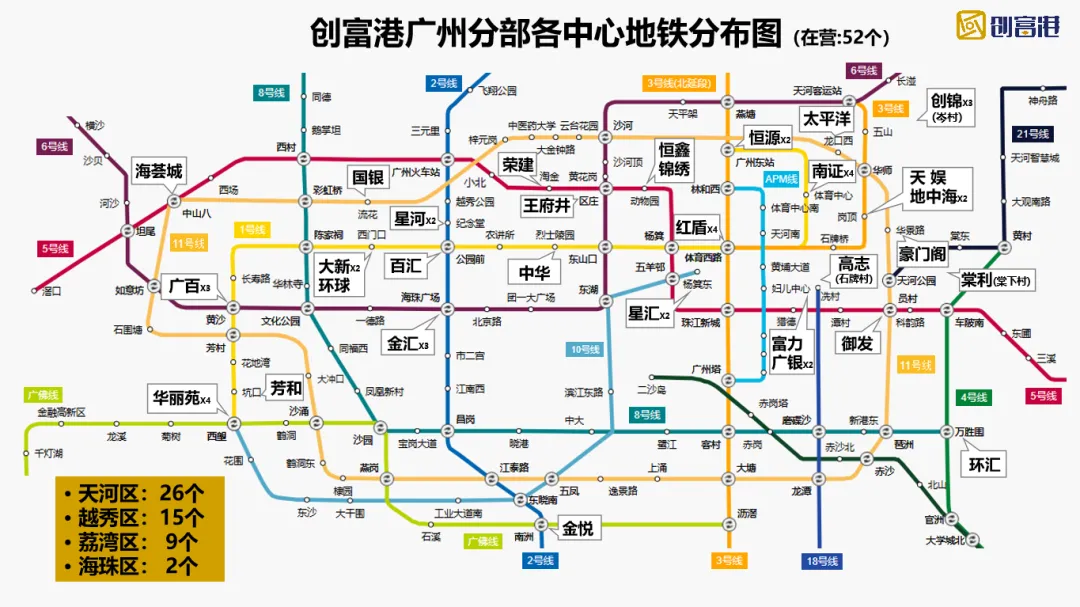 【天河区】岗顶、石牌、五羊邨、珠江新城(冼村)、体育西路、体育中心、天河北龙口西、广州东、科韵路、棠下、岑村、华景新城