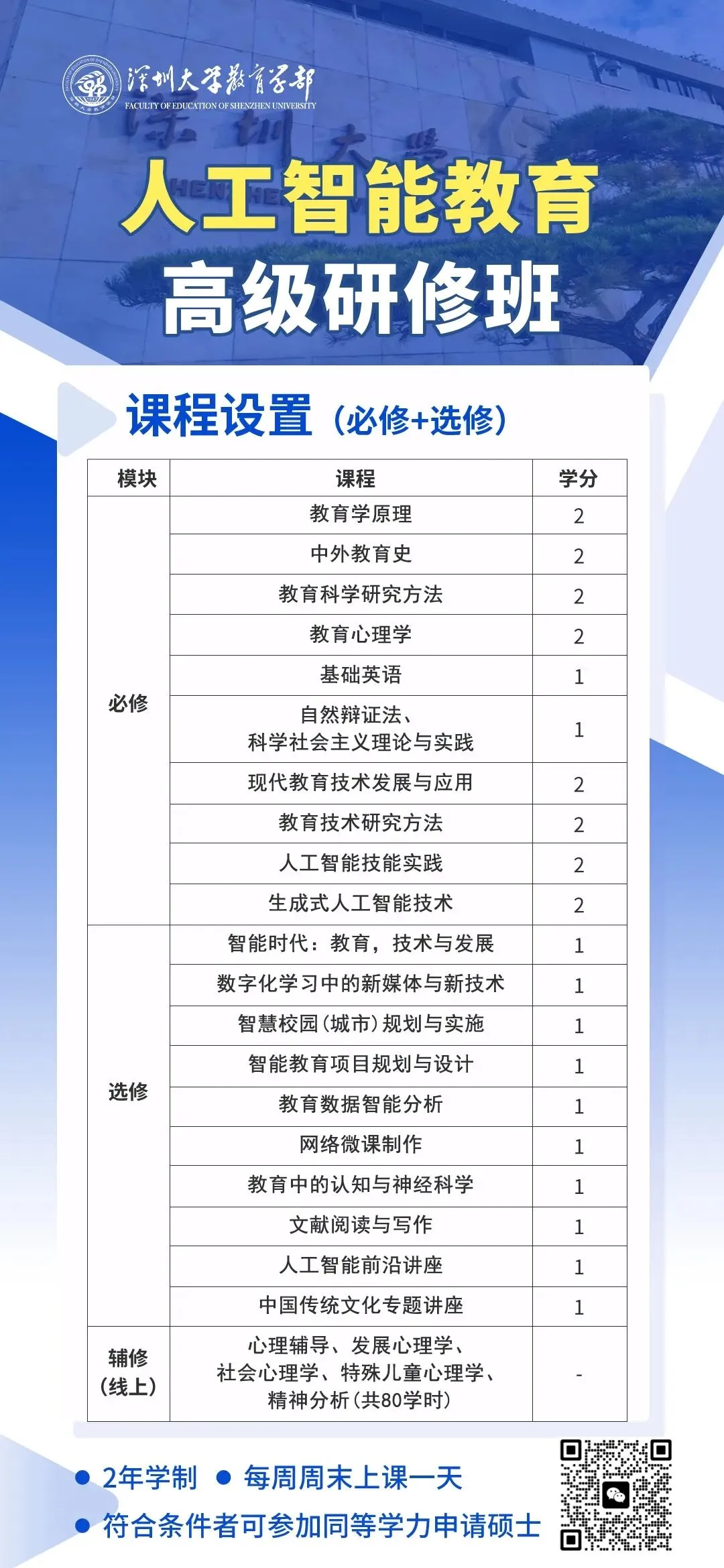 学习形式:面授班利用周六或周日授课一天(提供线上视频学习)。
