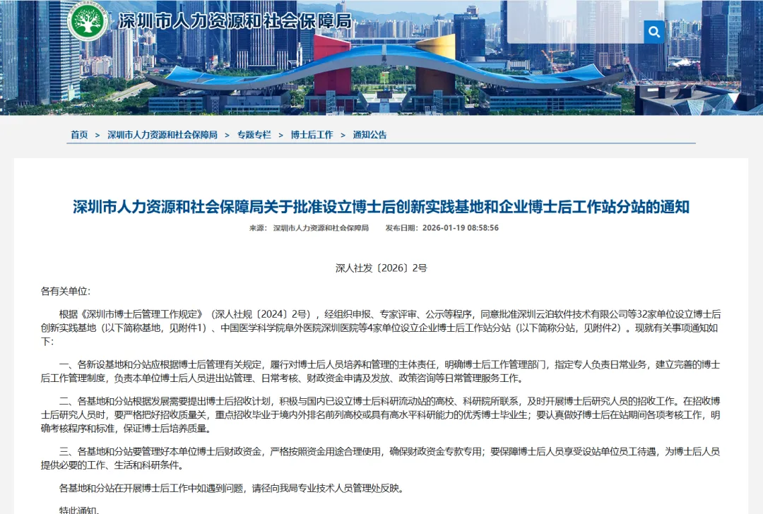 近日,深圳市人力资源和社会保障局正式批准市属国企深圳人才集团设立“深圳市博士后创新实践基地”。该基地将围绕人力资源服务、人才AI大数据、人才基金、人才供应链等方向开展博士后科研课题研究。基地的建立,标志着深圳人才集团战略转型又迈出坚实一步。