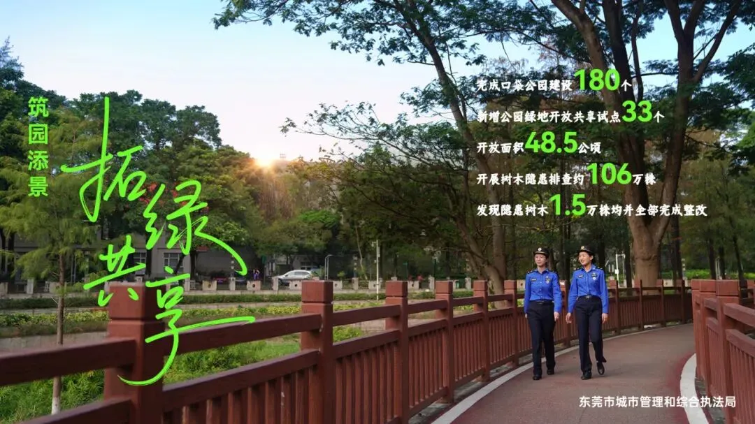 垃圾分类跻身超特大城市第一档,城市开放厕所覆盖率跃居全国百城第一,智慧城管项目获得中国智慧城市大会优秀案例一等奖,东莞植物园入选省首批区域植物园。