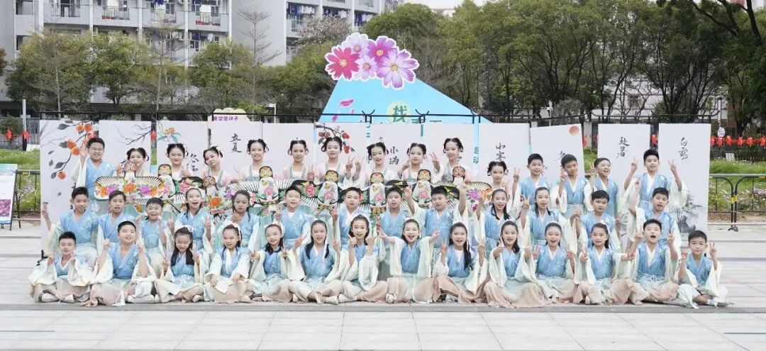 二十四节气是中国古代农耕文明的智慧结晶,反映自然节律的变化。歌曲以二十四节气的顺序为基础,将每个节气的名称和特点融入其中,歌曲旋律轻快、歌词简洁明快,朗朗上口,便于记忆和传唱。本作品将二十四节气的文化内涵和艺术相结合,融入古诗、演唱、声势、舞蹈,通过道具、服饰、队形的变化共同展示中华文化独特魅力。