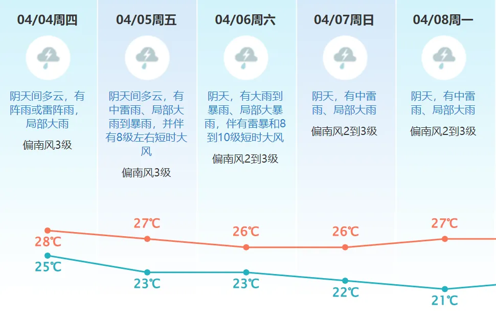 需特别注意防范雷雨