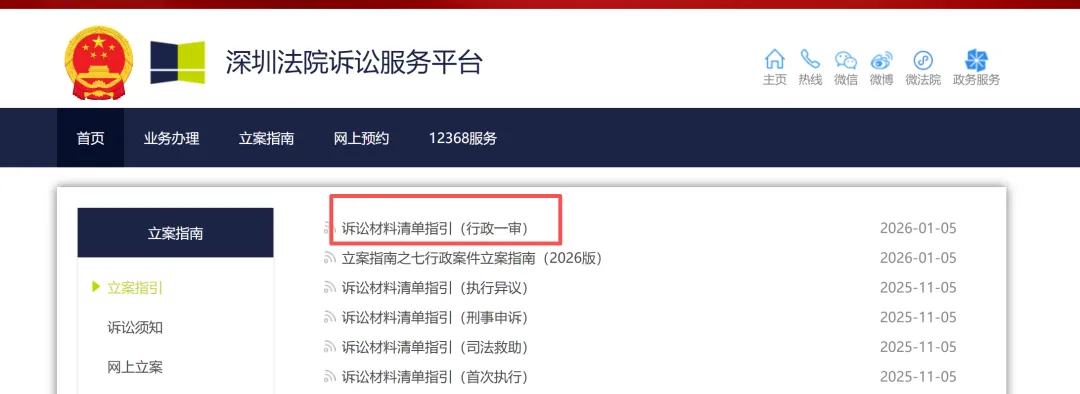 01诉讼材料清单指引(行政一审)