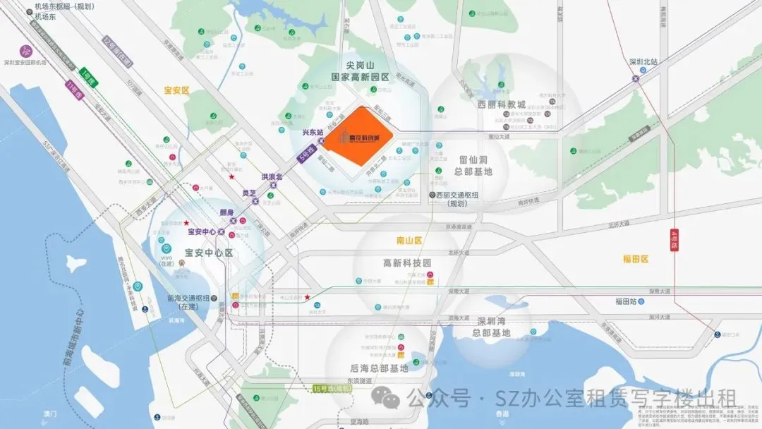 30分钟即达大铲湾港口、蛇口码头,20分钟对接福永码头,1小时直抵港澳码头,通达全球;紧临留仙大道、创业二路等主干道,南光高速、京港澳高速、南坪快速、107国道、深中通道,畅行珠三角;20分钟抵达深圳宝安国际机场,40分钟直抵香港国际机场,双国际机场零距全球5 号线兴东站(约100米),现有轨道交通11号线、1号线及5号线可快速通达深圳各区中心。便利的交通,大大节省时间成本,环球商务效率高,助力公司更大发展!【用地性质】:普通工业用地(M1)+新型产业用地(M0)+配套宿舍(R3)【项目位置】深圳市宝安区新安街道留仙大道与创业二路交汇处南侧(地铁5号线兴东站B出口)。宝安雪花科创城,兴东地铁站全新一手写字楼出售,准现楼发售,全球出售电话136-9163-9522陈经理,开发商直售无中介费,诚邀莅临品鉴。