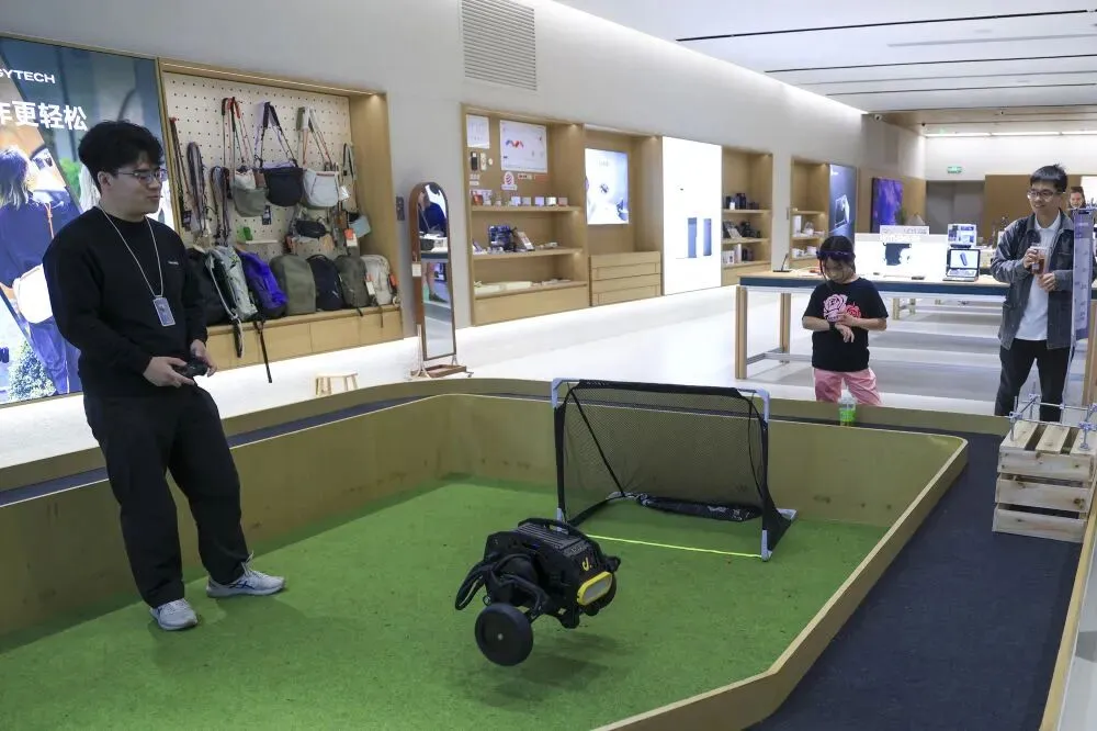 1月5日,顾客在深圳市南山区的INNO100全球创新旗舰店观看机器人产品演示。新华社记者 毛思倩 摄