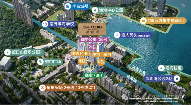 ▪️区位:南山蛇口望海路与湾厦路交汇处,紧邻2/8号线东角头站(步行200米)开发商:招商蛇口+渔二实业(国企背书,品质较稳)