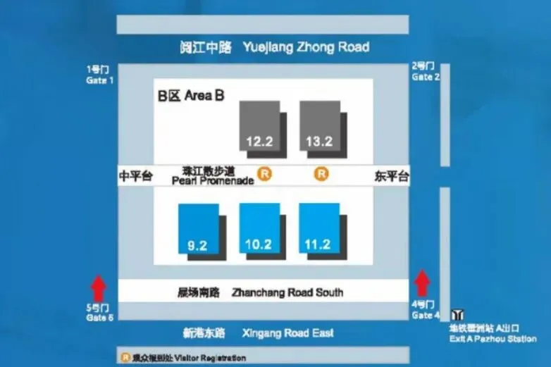 8/11 号线琶洲站 A/B 口,直达 B 区 4 号门;机场 / 火车站换乘至 8/11 号线即可。