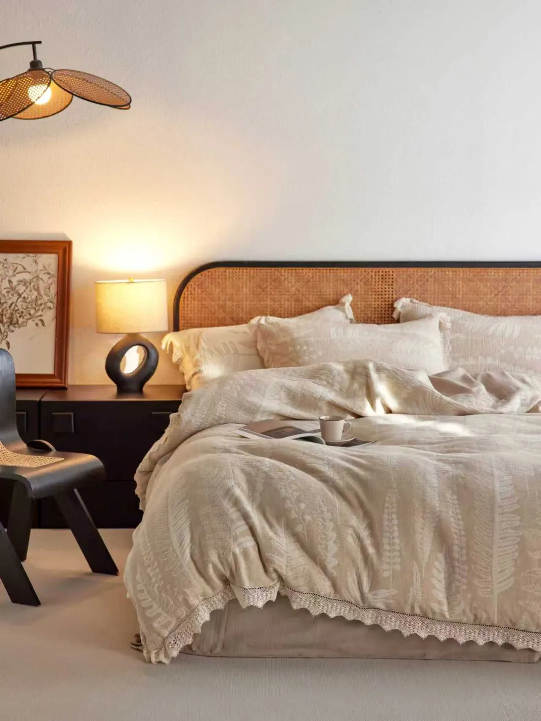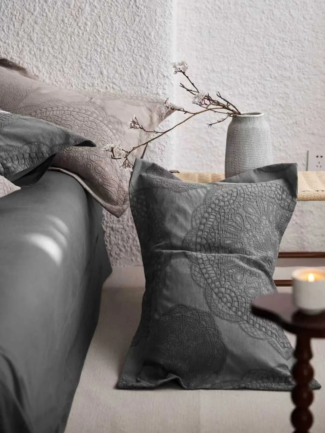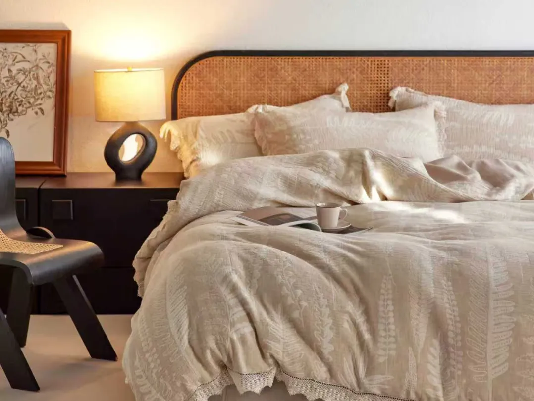 本次展会,致朴家居携“麻主棉辅”质朴家纺系列惊艳亮相。新品以棉麻提花面料演绎素雅自然,花边、纽扣等细节雕琢高级质感;纯色棉麻/全麻面料融入手绣、特种机绣工艺,简约中暗藏丰富肌理。依托自有工厂,品牌提供从面料直订到成品选购的一站式服务,灵活满足多元需求,邀您共赏自然美学新范式。